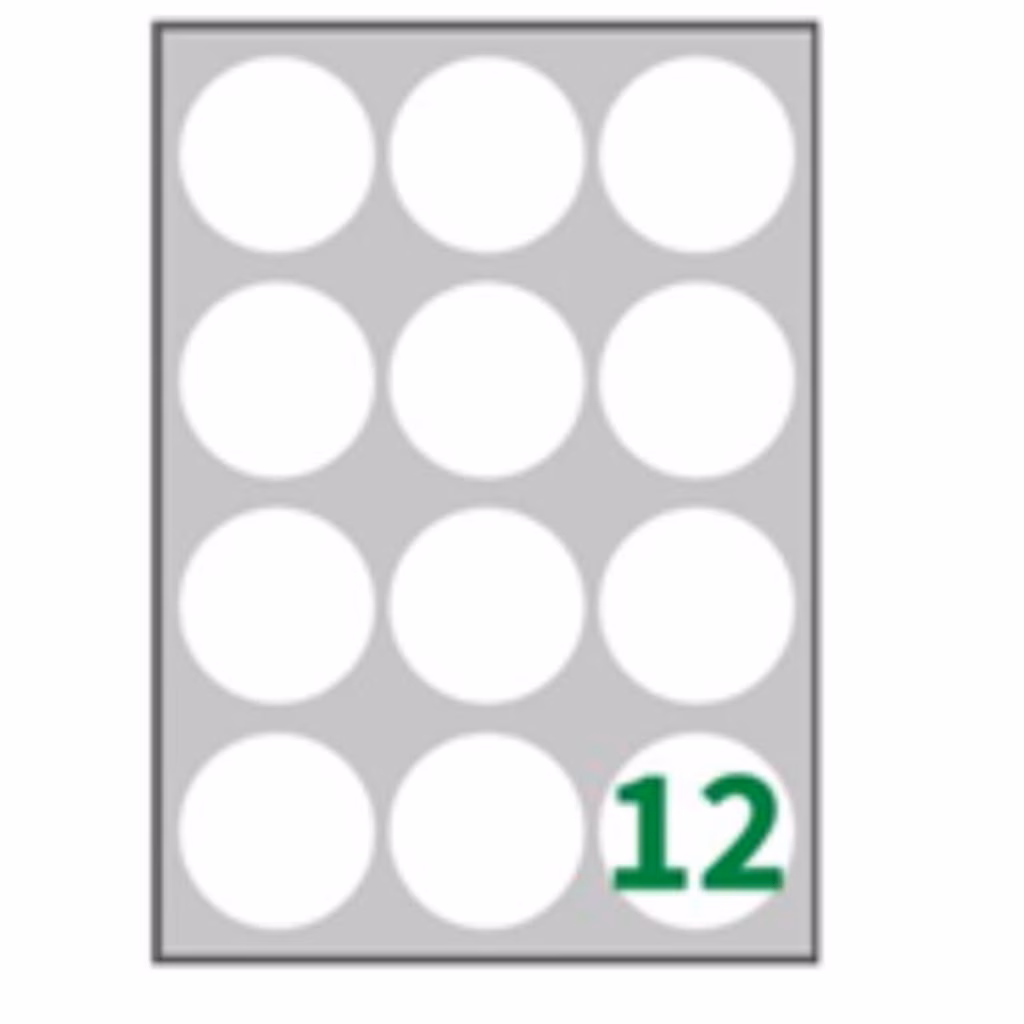 • Misura etichetta diam 60mm - 12 etichette per foglio - 1200 etichette per confezione