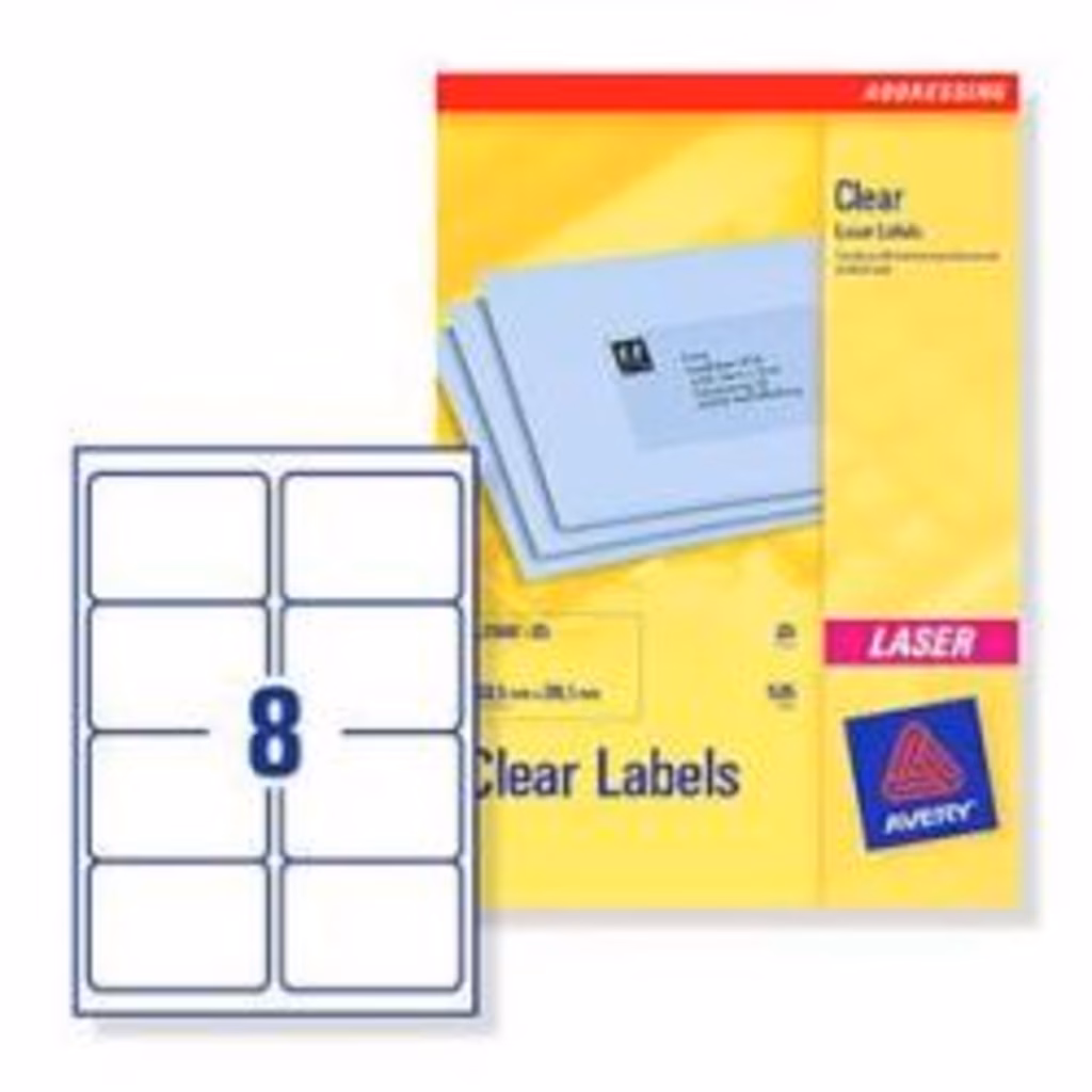 Etichette adesive in poliestere trasparente lucido, 99,1x67,7mm, 8 etichette per foglio, 25 fogli