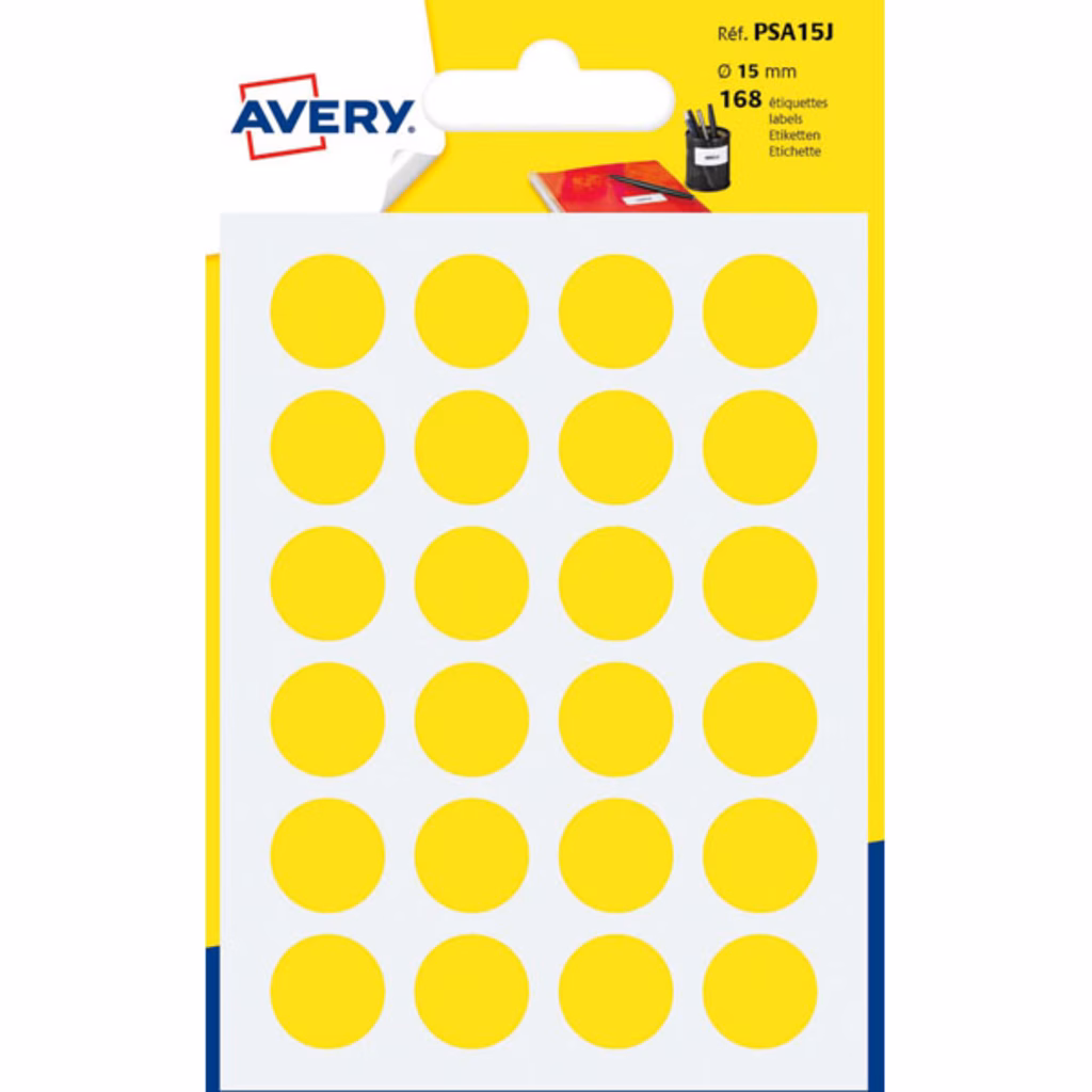 Etichette ad.rotonde in carta colorata gialla, scrivibili a mano, Ø 15 mm, 24 etich.per foglio, 7 ff