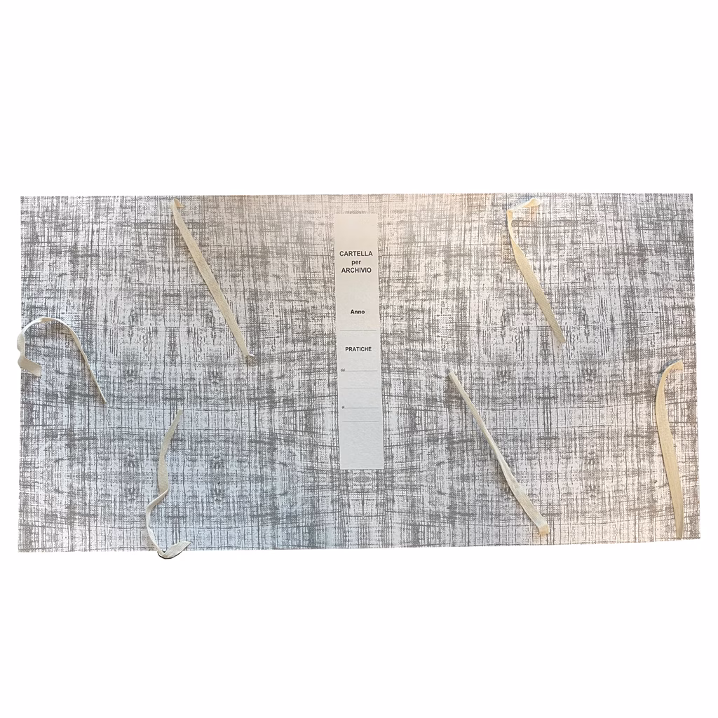 Faldone in robusto cartone accoppiato spessore mm 1,85 - dorso scrivibile - 6 lacci in tela saldamente fissati alla struttura del faldone - rivestito esternamente in carta stampata 90 g/m² - risguardo interno in carta non stampata 80 g/m² - dorso cm 8 - formato cm 40x45