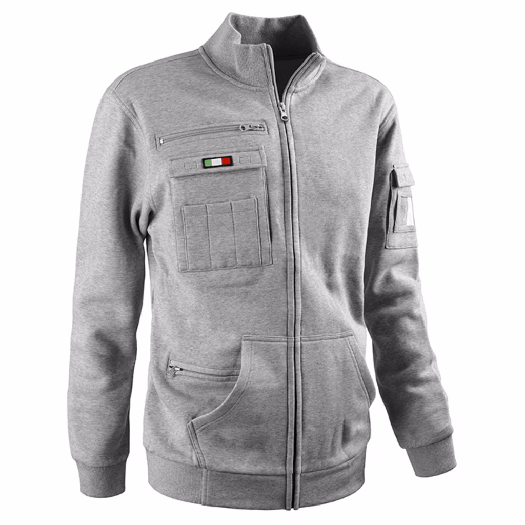 Felpa 65% cotone/35% poliestere - zip intera - rib in vita ai polsi e al collo - tasca con cerniera sul petto - tasca con velcro sul petto - tasca con cerniera in vita - 2 tasche laterali - tasca con velcro e portabadge manica sinistra