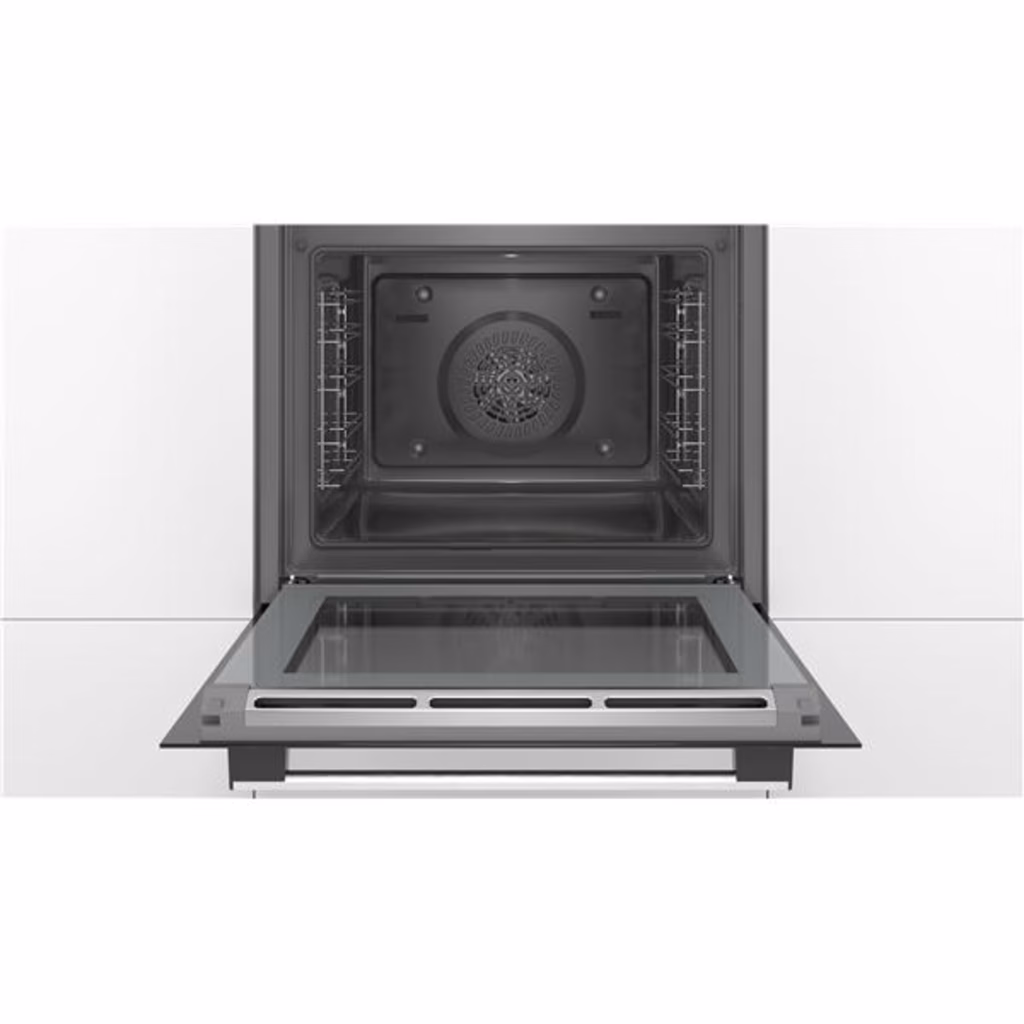 HBA172BS0 Serie 2 Forno da incasso 60 x 60 cm Acciaio Classe APer una cottura delicata. Il programma per cucinare risparmiando energia. Aria Calda Delicata migliora il programma di riscaldamento più utilizzato a livello domestico. La ventola distribuisce il calore in modo uniforme in tutta la cavità del forno, contribuendo a risparmiare energia. E se cucini piccoli prodotti da forno o torte in teglia non è nemmeno necessario il preriscaldamento. Pulire il forno non è mai stato così semplice. Il tuo forno è leggermente sporco e vorresti pulirlo rapidamente? Metti circa 400 ml di acqua e una goccia di detersivo per piatti sul ripiano più basso e seleziona il programma di Cleaning Assistance. Il programma di pulizia ecologico ammorbidisce i residui di cottura per rimuoverli facilmente. Preriscaldamento rapido Il preriscaldamento rapido aiuta a raggiungere la temperatura desiderata, più velocemente.Programmi automaticiProgrammi automatici di cottura: cucinare sarà semplicissimo