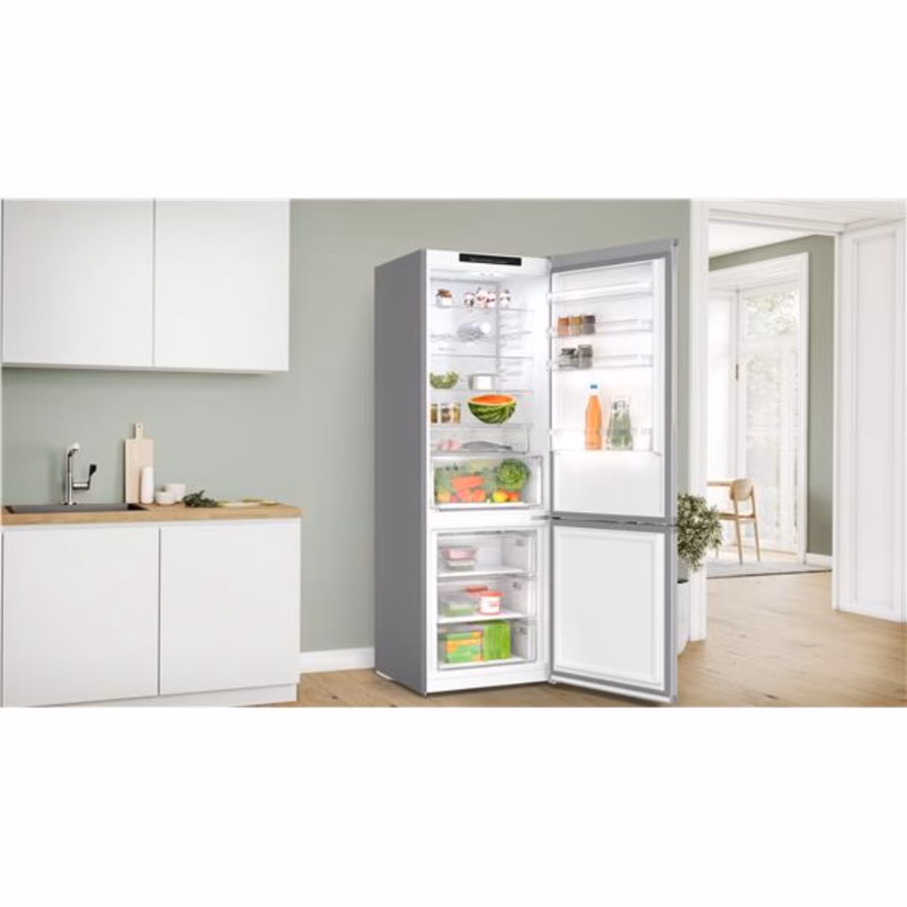 Bosch Serie 4 KGN492IAF Frigorifero Combinato da libera installazione 203 x 70 cm Acciaio anti-impronta Classe AFrigorifero combinato Total No Frost taglia XXL con cassetti VitaFresh: conserva i tuoi alimenti freschi più a lungo.