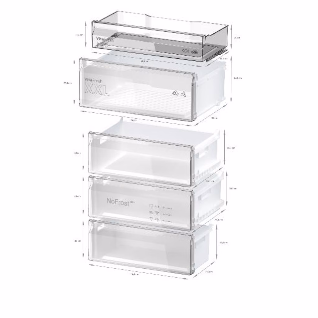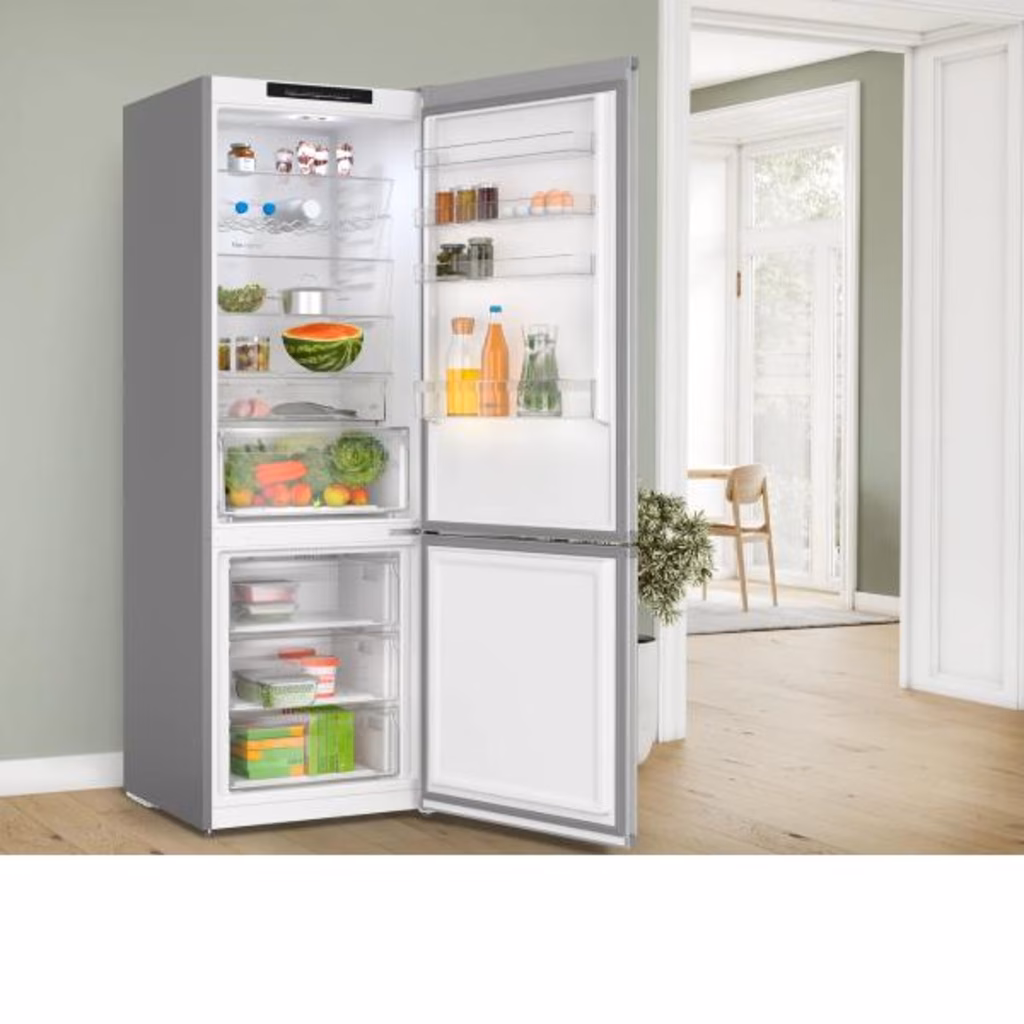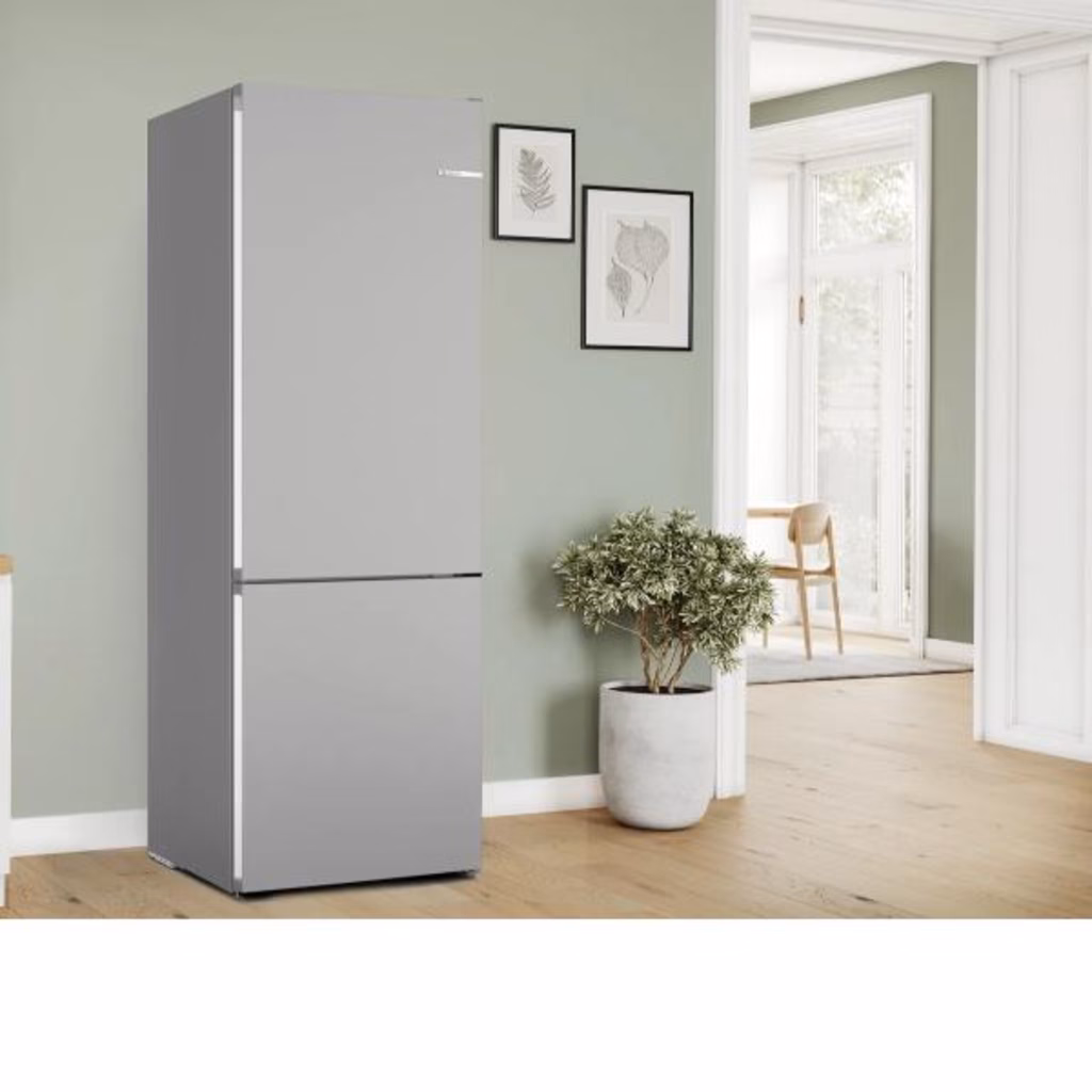 Frigorifero combinato da libera installazione 203 x 70 cm, Serie 4 della Bosh. Spazio extra large per i cibi freschi con sistema VitaFresh XXL, offrendo un ambiente di conservazione ideale per i cibi freschi. No frost che mantiene un flusso costante di aria in tutto il tuo frigorifero evitando l'accumulo di ghiaccio. Tecnologia Inverter intelligente. Sistema di raffreddamento separati che consente di risparmiare energia. Sensori Fresh Sense.
