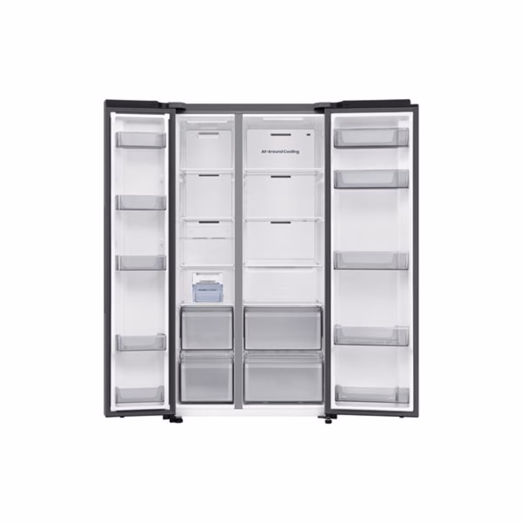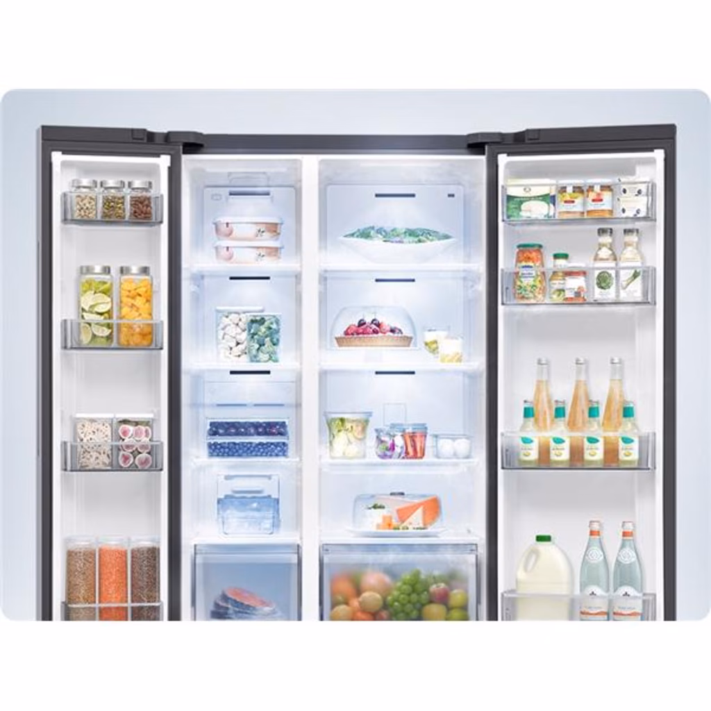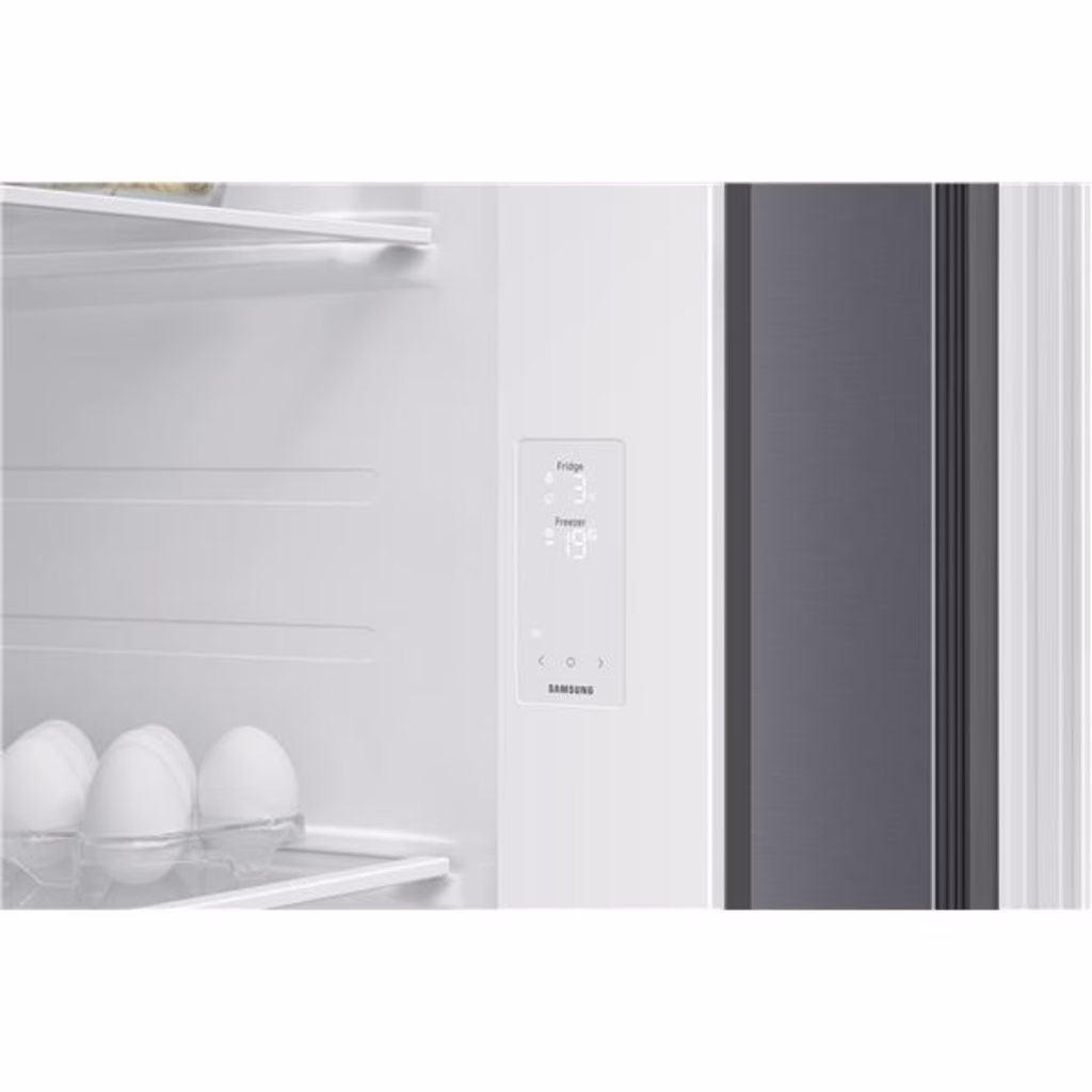 Samsung Frigorifero Side by Side 659L RS70F65QDTEFPer avere sempre tutto sotto controllo Wi-Fi integrato Da oggi non perderai mai più di vista il tuo frigorifero. Grazie al Wi-Fi integrato potrai monitorare e regolare le sue prestazioni utilizzando l'app SmartThings. Potrai tenere docchio la modalità di raffreddamento, modificare la temperatura e ricevere notifiche se hai lasciato lo sportello aperto. Inoltre, il sistema ti aiuterà a identificare eventuali problemi. Più spazio all interno Ancora più spazio disponibile con SpaceMax Con una capienza di 635 litri, potrai conservare tutto ciò di cui hai bisogno. E grazie alla tecnologia SpaceMax , le pareti interne sono molto più sottili. In questo modo, avrai a disposizione più spazio utile a parità di dimensioni esterne, senza rinunciare all efficienza energetica. Inoltre, il condotto di raffreddamento piatto nella parete posteriore riduce lo spazio inutilizzato. Una temperatura costante su tutta la superficie All-around Cooling Con questa funzione, gli alimenti saranno sempre freschi su qualsiasi ripiano e in ogni scomparto. La funzione All-Around Cooling assicura una temperatura uniforme in ogni scomparto e in ogni angolo del frigorifero, per conservare gli alimenti alla giusta temperatura. Controlla costantemente la temperatura e fa circolare laria fredda in ogni punto del frigorifero attraverso bocchette collocate in posizioni strategiche. Una freschezza incredibile Metal Cooling Mantieni sempre stabile la temperatura per preservare la freschezza dei cibi anche se la porta viene aperta di frequente. Il condotto Metal Cooling posizionato nella parete di fondo trattiene il freddo e compensa subito eventuali perdite di calore. Inoltre, è facile da pulire ed è anche esteticamente gradevole. Raffredda e congela in un attimo Power Cool / Power Freeze Anche la velocità è importante. Premendo un pulsante, la funzione Power Cool fa circolare un potente getto daria fredda nel frigorifero per raffreddare rapidamente cibi e bevande. La funzione Power Freeze fa la stessa cosa nel congelatore. Lideale per congelare o raffreddare i cibi al punto giusto, ma anche per preparare il ghiaccio. SmartThings Energy Per utilizzare l'energia nel modo più efficiente. Il modo più intelligente per risparmiare. Gestisci i consumi energetici dove e quando vuoi. SmartThings Energy fornisce una serie di consigli utili per ottenere la massima efficienza energetica. Inoltre, questa funzione ti consente di monitorare in tempo reale i consumi energetici dei tuoi elettrodomestici e di confrontarli con quelli del mese precedente. E se rischi di superare la soglia di consumo mensile che hai impostato, il sistema ti invierà una notifica. SmartThings Home Care Manutenzione intelligente. Prestazioni eccezionali. Prenderti cura del tuo frigorifero non è mai stato così semplice. SmartThings Home Care ti permette di monitorare in tempo reale il tuo frigorifero e di ricevere notifiche. In questo modo potrai verificare in ogni momento il suo stato, ad esempio le condizioni del filtro dell'acqua. Inoltre, il sistema ti avvisa automaticamente quando è necessario sostituire un componente o se viene rilevato un problema, indicando anche una possibile soluzione. SmartThings Food Il modo più intelligente per cucinare. Prepara i tuoi piatti preferiti. Da oggi potrai scegliere gli alimenti da acquistare e preparare le tue ricette in modo semplice ed efficace. Con SmartThings Food potrai compilare una lista degli alimenti disponibili nel frigorifero e tenere sempre docchio le date di scadenza, per sapere subito e in ogni momento di cosa hai bisogno. Inoltre, il sistema ti propone ricette personalizzate in base alle tue preferenze alimentari e agli ingredienti disponibili. Efficienza costante [Valido a livello globale, ad eccezione degli USA] Compressore AI Inverter Alimenti sempre freschi con il massimo risparmio energetico. La struttura ottimizzata del compressore AI Inverter aumenta la sua inerzia di 4,1 volte, consentendo di ridurre i consumi energetici. Grazie a un algoritmo basato sullAI, regola la velocità in base alle abitudini di utilizzo dell'utente e consente di risparmiare energia. Il compressore può contare su una garanzia di 20 anni. Conserva frutta e verdura Big Vegi Box Da oggi non dovrai più fare fatica per ricavare spazio per tutto ciò che ti serve ogni giorno. Grazie al formato extralarge di Big Vegi Box avrai tutto lo spazio necessario per conservare una grande quantità di frutta e verdura fresca. In questo modo avrai subito a portata di mano quello che mangi più spesso. Troverai tutto in un unico posto, senza occupare spazio in cucina.Per avere sempre tutto sotto controlloWi-Fi integrato