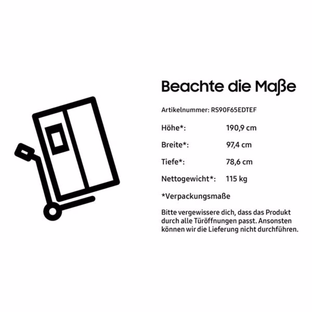 Samsung Frigorifero Side By Side AI Home 621L RS90F65EDTEFUna risposta a ogni tuo desiderio Assistente Bixby integrato Una soluzione pratica per controllare il tuo frigorifero. Lassistente Samsung Bixby[1] è integrato e potrai utilizzarlo per controllare le impostazioni, selezionare le funzioni e rivolgere semplici domande. Dopo l'ultimo aggiornamento, il sistema ricorderà le conversazioni precedenti e sarà in grado di riconoscere anche più comandi in una sola frase[2]. Una temperatura costante su tutta la superficie All-Around Cooling Con questa funzione, gli alimenti saranno sempre freschi su qualsiasi ripiano e in ogni scomparto. La funzione All-Around Cooling assicura una temperatura uniforme in ogni scomparto e in ogni angolo del frigorifero[3] , per conservare gli alimenti alla giusta temperatura. Controlla costantemente la temperatura e fa circolare laria fredda in ogni punto del frigorifero attraverso bocchette collocate in posizioni strategiche. Una freschezza incredibile Metal Cooling Mantieni sempre stabile la temperatura per preservare la freschezza dei cibi anche se la porta viene aperta di frequente. Il condotto Metal Cooling posizionato nella parete di fondo trattiene il freddo e compensa subito eventuali perdite di calore. Inoltre, è facile da pulire ed è anche esteticamente gradevole. Raffredda e congela in un attimo Power Cool / Power Freeze Anche la velocità è importante. Premendo un pulsante, la funzione Power Cool fa circolare un potente getto daria fredda nel frigorifero per raffreddare rapidamente cibi e bevande. La funzione Power Freeze fa la stessa cosa nel congelatore. Lideale per congelare o raffreddare i cibi al punto giusto, ma anche per preparare il ghiaccio. Risparmia energia in modo intelligente AI Energy Mode Con AI Energy Mode, disponibile per SmartThings Energy[5] , potrai ridurre i tuoi consumi energetici fino al 10%[4]. Se consumi più di quanto avresti immaginato, da oggi cè un modo semplice per risparmiare energia[6]. Con questo sistema potrai regolare la velocità del compressore e il ciclo di sbrinamento in modo intelligente, in base alle tue abitudini di utilizzo e all'ambiente circostante. Per avere sempre tutto sotto controllo Wi-Fi integrato Da oggi non perderai mai più di vista il tuo frigorifero. Grazie al Wi-Fi integrato potrai monitorare e regolare le sue prestazioni utilizzando l'app SmartThings[7]. Potrai tenere docchio la modalità di raffreddamento, modificare la temperatura e ricevere notifiche se hai lasciato lo sportello aperto. Inoltre, il sistema ti aiuterà a identificare eventuali problemi. SmartThings Energy Per utilizzare l'energia nel modo più efficiente. Il modo più intelligente per risparmiare. Gestisci i consumi energetici dove e quando vuoi. SmartThings Energy[8] fornisce una serie di consigli utili per ottenere la massima efficienza energetica. Inoltre, questa funzione ti consente di monitorare in tempo reale i consumi energetici dei tuoi elettrodomestici[9] e di confrontarli con quelli del mese precedente. E se rischi di superare la soglia di consumo mensile che hai impostato, il sistema ti invierà una notifica. SmartThings Home Care Manutenzione intelligente. Prestazioni eccezionali. Prenderti cura del tuo frigorifero non è mai stato così semplice. SmartThings Home Care[10] ti permette di monitorare in tempo reale il tuo frigorifero e di ricevere notifiche. In questo modo potrai verificare in ogni momento il suo stato, ad esempio le condizioni del filtro dell'acqua. Inoltre, il sistema ti avvisa automaticamente quando è necessario sostituire un componente o se viene rilevato un problema, indicando anche una possibile soluzione. SmartThings Food Il modo più intelligente per cucinare. Prepara i tuoi piatti preferiti. Da oggi potrai scegliere gli alimenti da acquistare e preparare le tue ricette in modo semplice ed efficace. Con SmartThings Food[11] potrai compilare una lista degli alimenti disponibili nel frigorifero e tenere sempre docchio le date di scadenza, per sapere subito e in ogni momento di cosa hai bisogno. Inoltre, il sistema ti propone ricette personalizzate in base alle tue preferenze alimentari e agli ingredienti disponibili. Efficienza costante Compressore AI Inverter Alimenti sempre freschi con il massimo risparmio energetico. La struttura ottimizzata del compressore AI Inverter aumenta la sua inerzia di 4,1 volte[12] , consentendo di ridurre i consumi energetici[12]. Grazie a un algoritmo basato sullAI, regola la velocità in base alle abitudini di utilizzo dell'utente e consente di risparmiare energia. Il compressore può contare su una garanzia di 20 anni. Silenzioso ed efficiente Compressore Digital Inverter (20 anni di garanzia) Alta efficienza energetica, meno rumore e prestazioni più durature. Il compressore Digital Inverter regola automaticamente la propria velocità in base alleffettiva necessità di raffreddamento. Silenzioso, efficiente e di lunga durata, il compressore è accompagnato da 20 anni di garanzia[13]. Adatto a qualsiasi spazio Dispenser di acqua e ghiaccio (senza allacciamento idrico) Installa il frigorifero ovunque tu voglia senza perdere tempo con tubature o condutture disordinate. Dispone di un grande serbatoio d'acqua da 4,5 litri, privo di BPA[14] , per il dispenser di acqua e ghiaccio senza allacciamento idrico. In questo modo, potrai installarlo praticamente ovunque. E non dovrai nemmeno perdere tempo a cambiare regolarmente il filtro dellacqua. Uno spazio ideale per le bottiglie più grandi Rack & Shelf Il ripiano multifunzionale Rack & Shelf consente di sfruttare al meglio lo spazio del frigorifero. Questo ripiano infatti è particolarmente capiente e può contenere non solo bottiglie di vino di dimensioni standard, ma anche bottiglie più grandi[15] , come quelle di champagne. Inoltre, la forma piatta lo rende anche molto versatile e adatto a contenere altri alimenti, ad esempio le pizze o i cartoni delle uova.Una risposta a ogni tuo desiderioAssistente B