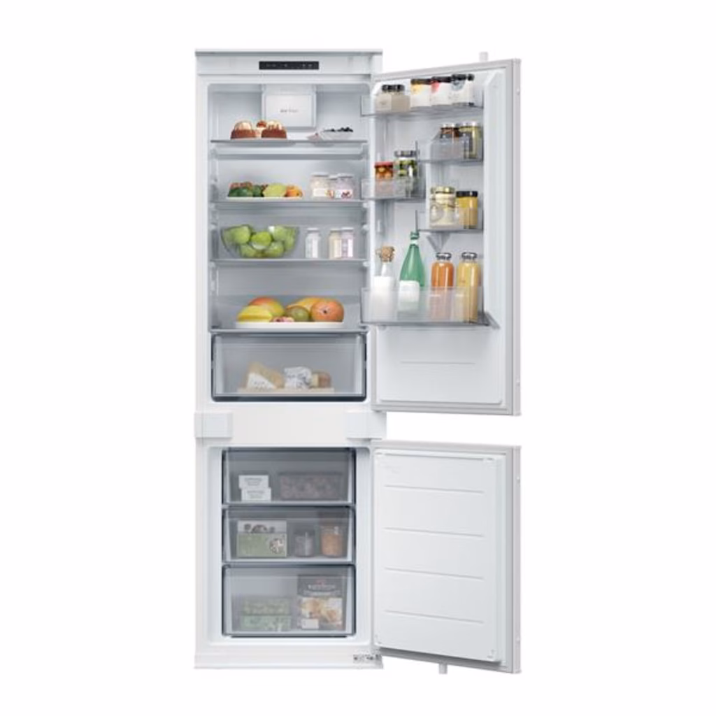 Candy CNBQL3518EV Da incasso 268 L E BiancoCandy CNBQL3518EV. Capacità netta totale: 268 L. Cerniera porta: Destra. Classe climatica: SN-ST, Emissione acustica: 35 dB. Capacità netta frigorifero: 194 L, Luce interna, Numero di ripiani frigorifero: 4, Numero di cassetti per verdura: 1. Capacità netta congelatore: 74 L, Capacità di congelamento: 3 kg/24h. Classe efficienza energetica: E, Consumo energetico annuo: 220 kWh. Colore del prodotto: Bianco