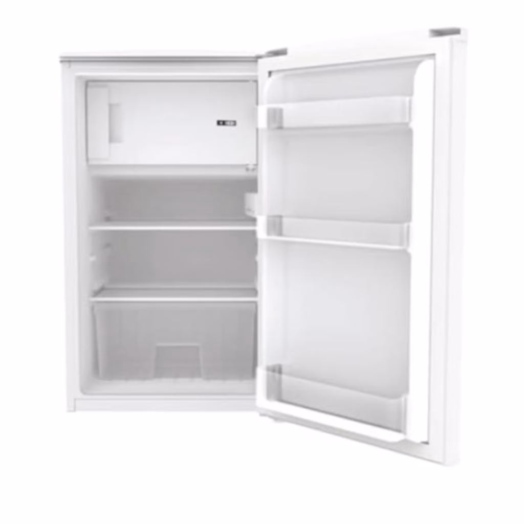 Frigo refrigeratore da tavolo, libera installazione, della Candy. Colore bianco.                    Frigo con piano da tavolo con anta. Controllo meccanico. Materiale dei ripiani della porta in plastica e mensola porte Fram. LED a luce interna.