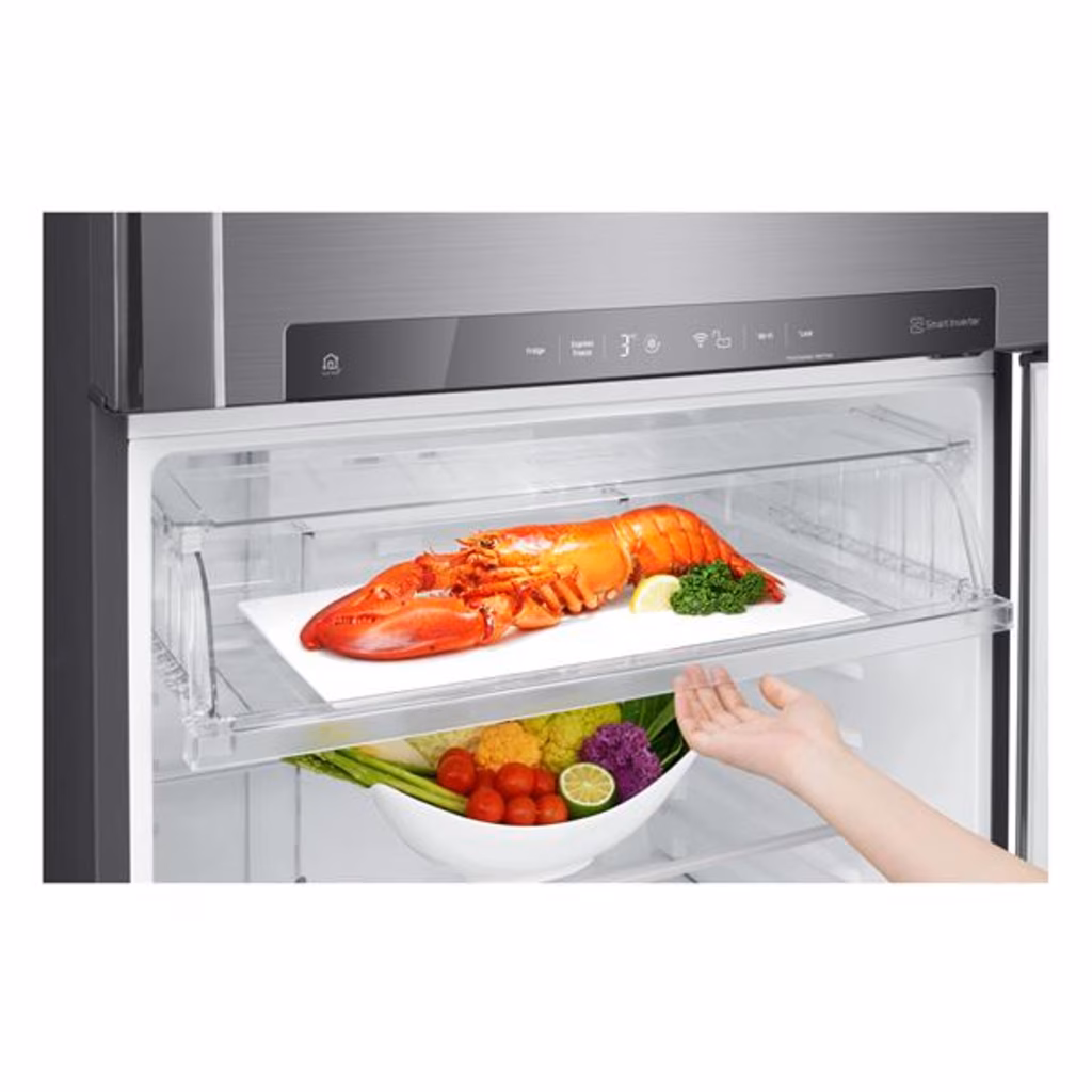 LG GTB744PZHED Frigorifero doppia porta, Classe E, 506L, Wi-Fi, Door Cooling, Cassetto 0 gradi, Gestione umidità, InoxGestione del frigorifero tramite Wi-Fi e app LG ThinQ Collega il frigorifero al Wi-Fi e scarica l'app LG ThinQ sul tuo smartphone iOS o Android per avere a portata di mano tante funzioni e gestire il frigorifero anche quando sei fuori casa. Ad esempio, puoi impostare le temperature del frigorifero e del congelatore, oppure attivare la funzione di raffreddamento rapido quando stai tornando dal fare la spesa. Inoltre, puoi monitorare i consumi direttamente dal tuo smartphone. Sistema Door Cooling Ti sei mai accorto che la temperatura del frigorifero non è uniforme in tutte le zone? Questo perché le bocchette di aria sono poste sulla parte posteriore, rendendo il raffreddamento della zona della porta meno efficace. Con il sistema Door Cooling , invece, la bocchetta supplementare posta lateralmente raffredda più velocemente e più efficacemente le zone del frigo, compresa quella della porta, migliorando la conservazione degli alimenti. Tecnologia Linear Cooling Per conservare meglio i cibi in frigorifero, è importante che la temperatura al suo interno resti più costante possibile. Rispetto ai frigoriferi tradizionali, che possono avere fluttuazioni di temperatura di ±1°C, la nostra tecnologia Linear Cooling mantiene la temperatura del frigo costante, con differenze di solo ±0,5°C. In questo modo puoi conservare i tuoi cibi più a lungo mantenendone la freschezza. Cassetto con selettore dell'umidità Per essere conservate al meglio, la frutta e la verdura hanno bisogno di un grado di umidità differente. Il selettore sul cassetto frutta & verdura permette di controllare il grado di umidità in base a cosa conservi. Ti basterà selezionare Frutta oppure Verdura per creare all'interno del cassetto le condizioni ottimali di umidità, con un semplice gesto. Cassetto Zero Gradi Se devi conservare della carne o del pesce freschi, ma non vuoi congelarli perché li consumerai di lì a poco, in questo elettrodomestico hai a disposizione il cassetto Zero Gradi. Si tratta di un cassetto dedicato all'interno del frigorifero per conservare la carne e il pesce alla temperatura di circa 0°C e con un basso grado di umidità, grazie alle speciali bocchette che prelevano l'aria fredda direttamente dal freezer. Compressore Smart Inverter Il compressore di questo frigorifero è silenzioso nel funzionamento, efficiente nelle prestazioni ed è garantito per ben 10 anni. *10 anni di garanzia sul Compressore Smart Inverter. Manodopera e intervento esclusi. Smart Diagnosis Se dovessero esserci dei problemi di funzionamento del frigorifero puoi eseguire una diagnosi automatica. L'esito della diagnosi ti dirà se puoi risolvere il problema in autonomia oppure se hai bisogno dell'intervento di un tecnico specializzato. No Frost con Multi Air Flow Questo sistema combina i vantaggi della tecnologia Total No Frost con il sistema di areazione diffusa Multi Air Flow, migliorando la conservazione degli alimenti grazie al flusso costante di aria fredda attraverso le bocchette poste su ogni ripiano. Questo sistema di refrigerazione riduce la possibilità che si formi condensa nel frigorifero ed evita che si crei il ghiaccio sulle pareti del freezer, così non dovrai perdere tempo a sbrinarlo.