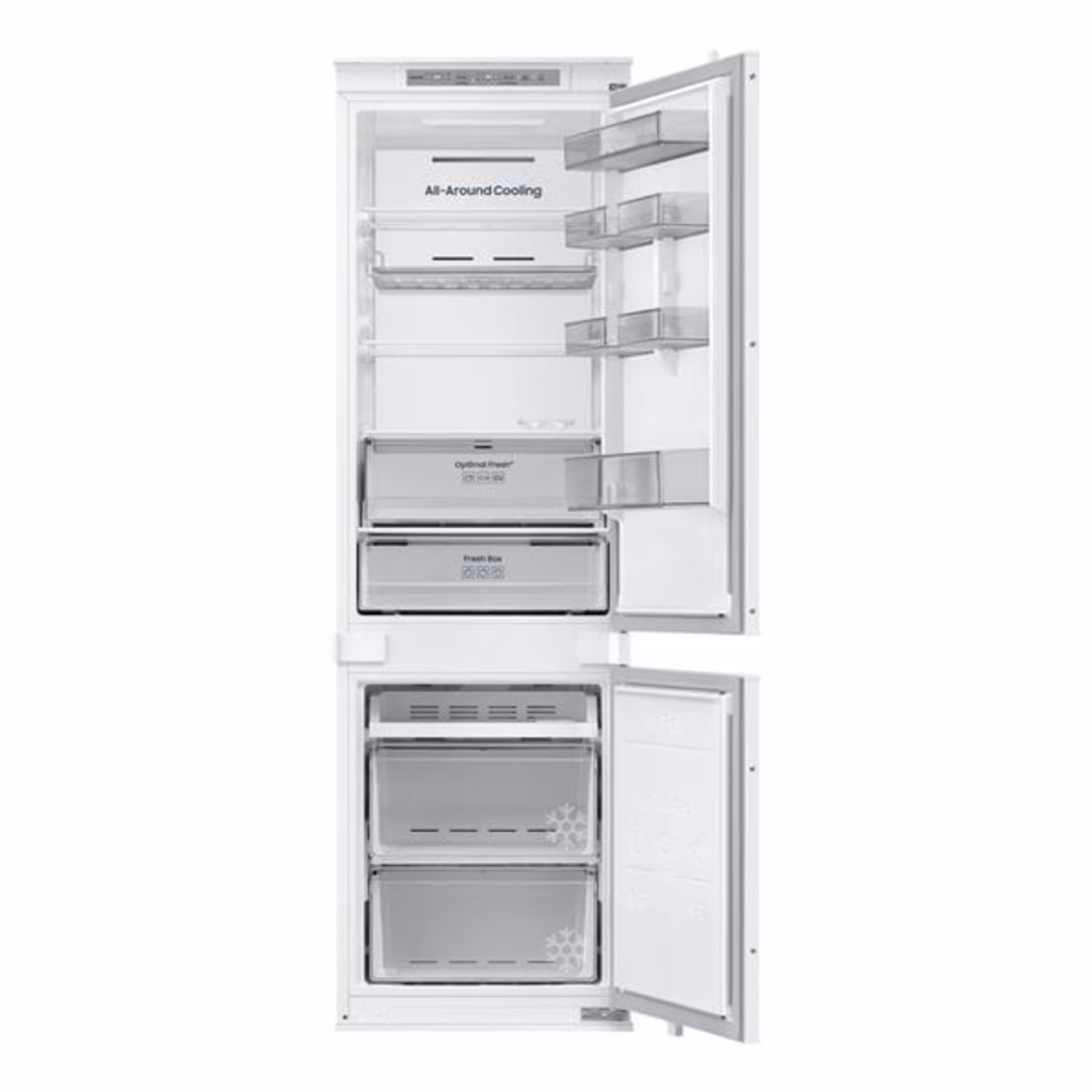 Il frigorifero da incasso Samsung BRB70F26CES0 è la soluzione ideale per chi cerca affidabilità, innovazione e un design discreto. Con una capacità di 267 litri e una classe energetica E, offre il giusto equilibrio tra spazio, efficienza e praticità. Grazie al sistema Total No Frost, elimina la formazione di ghiaccio e garantisce una temperatura uniforme in ogni angolo, mentre la tecnologia All Around Cooling distribuisce l aria fredda in modo omogeneo, assicurando che ogni alimento sia conservato alla perfezione. I cassetti Humidity Fresh e Optimal Fresh sono progettati per mantenere frutta, verdura e altri alimenti freschi più a lungo, regolando il livello di umidità per adattarsi alle tue esigenze di conservazione. La connettività Wi-Fi ti consente di monitorare e regolare il frigorifero comodamente tramite smartphone, offrendoti un controllo totale anche a distanza.