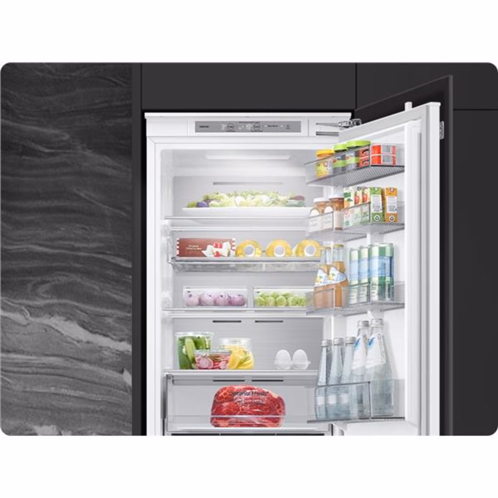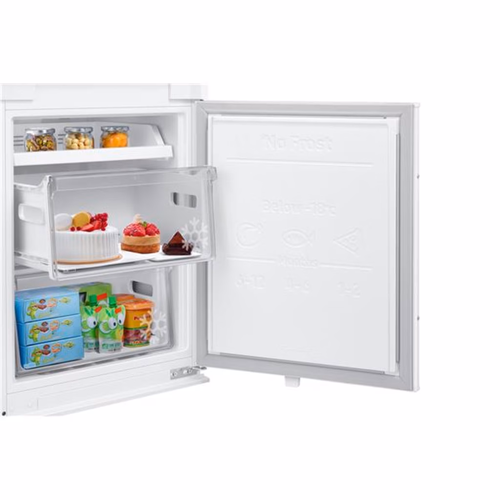l frigorifero da incasso Samsung BRB70F30BES0, con una capacità totale di 298 litri e classe energetica E, è la scelta perfetta per chi desidera unire tecnologia avanzata e stile elegante. Grazie alla funzione Total No Frost, dimentica lo sbrinamento manuale: la distribuzione uniforme dell aria elimina l accumulo di ghiaccio, mantenendo gli alimenti freschi più a lungo. La tecnologia Twin Cooling Plus garantisce il controllo separato di temperatura e umidità tra frigorifero e congelatore, preservando il sapore e la freschezza degli alimenti. Con la funzione Cool Select Plus, puoi trasformare il comparto freezer in frigorifero a seconda delle tue esigenze, aggiungendo flessibilità alla conservazione. Mantieni gli alimenti più delicati nelle condizioni ottimali con i cassetti Humidity Fresh e Optimal Fresh, progettati per regolare l umidità e garantire una freschezza prolungata. Inoltre, la connettività Wi-Fi ti permette di monitorare e gestire il frigorifero direttamente dallo smartphone per un controllo ancora più comodo.