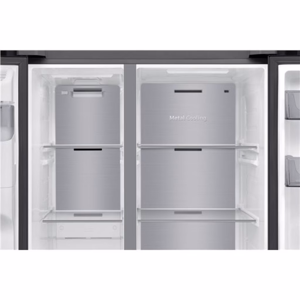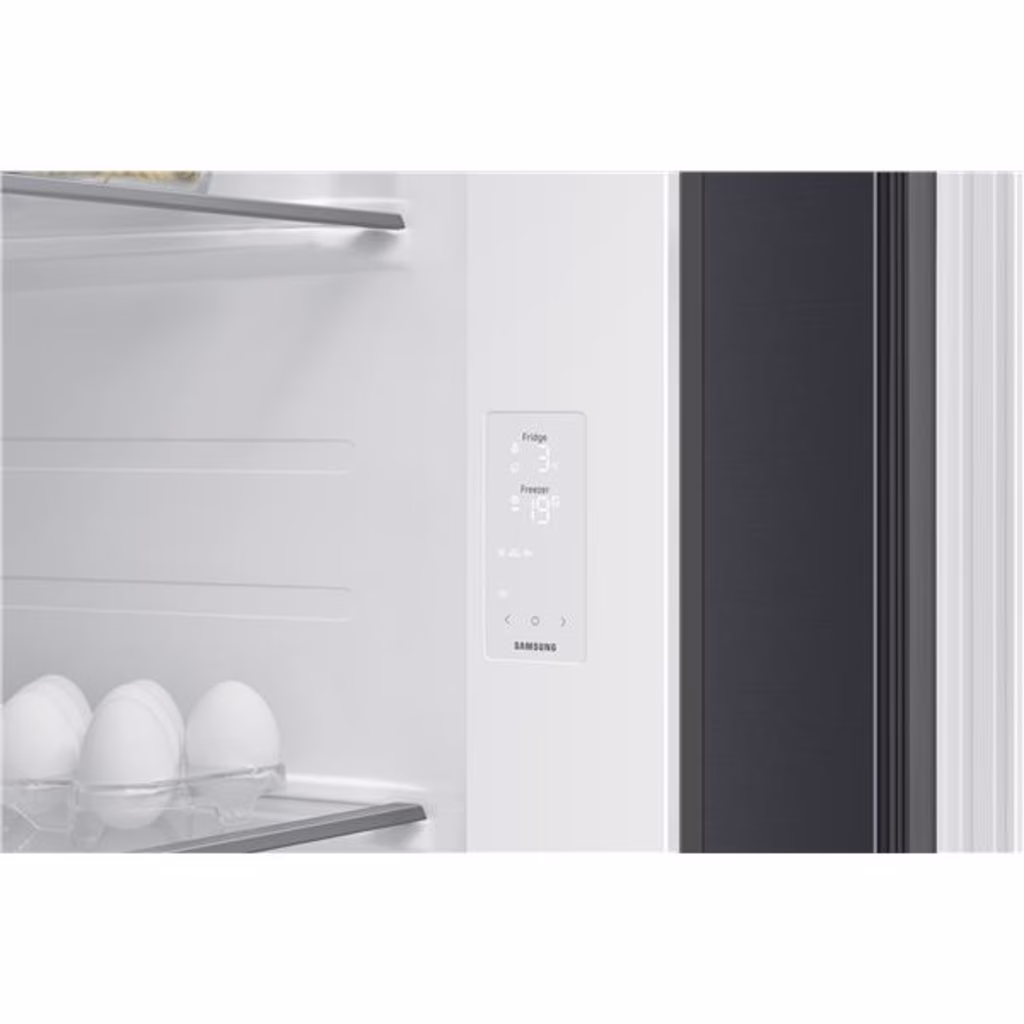 Samsung Frigorifero Side By Side 640L RS70F64KEFEFPer avere sempre tutto sotto controllo Wi-Fi integrato Da oggi non perderai mai più di vista il tuo frigorifero. Grazie al Wi-Fi integrato potrai monitorare e regolare le sue prestazioni utilizzando l'app SmartThings[1]. Potrai tenere docchio la modalità di raffreddamento, modificare la temperatura e ricevere notifiche se hai lasciato lo sportello aperto. Inoltre, il sistema ti aiuterà a identificare eventuali problemi. Efficienza intelligente per alimenti sempre freschi AI Hybrid Cooling Risparmia energia e conserva più a lungo ogni alimento. Il compressore da 13 cc e l'elemento Peltier di AI Hybrid Cooling possono funzionare separatamente o insieme per migliorare l'efficienza. Inoltre, il sistema modifica le proprie prestazioni nel tempo in base alle abitudini di utilizzo. E mantiene sempre una temperatura costante[2] per conservare più a lungo gli alimenti. Una temperatura costante su tutta la superficie All-around Cooling Con questa funzione, gli alimenti saranno sempre freschi su qualsiasi ripiano e in ogni scomparto. La funzione All-Around Cooling assicura una temperatura uniforme in ogni scomparto e in ogni angolo del frigorifero[3] , per conservare gli alimenti alla giusta temperatura. Controlla costantemente la temperatura e fa circolare laria fredda in ogni punto del frigorifero attraverso bocchette collocate in posizioni strategiche. Una freschezza incredibile Metal Cooling (disponibile a scelta) Mantieni sempre stabile la temperatura per preservare la freschezza dei cibi anche se la porta viene aperta di frequente. Il condotto Metal Cooling posizionato nella parete di fondo trattiene il freddo e compensa subito eventuali perdite di calore. Inoltre, è facile da pulire ed è anche esteticamente gradevole. Raffredda e congela in un attimo Power Cool / Power Freeze Anche la velocità è importante. Premendo un pulsante, la funzione Power Cool fa circolare un potente getto daria fredda nel frigorifero per raffreddare rapidamente cibi e bevande. La funzione Power Freeze fa la stessa cosa nel congelatore. Lideale per congelare o raffreddare i cibi al punto giusto, ma anche per preparare il ghiaccio. SmartThings Energy Per utilizzare l'energia nel modo più efficiente. Il modo più intelligente per risparmiare. Gestisci i consumi energetici dove e quando vuoi. SmartThings Energy[4] fornisce una serie di consigli utili per ottenere la massima efficienza energetica. Inoltre, questa funzione ti consente di monitorare in tempo reale i consumi energetici dei tuoi elettrodomestici[5] e di confrontarli con quelli del mese precedente. E se rischi di superare la soglia di consumo mensile che hai impostato, il sistema ti invierà una notifica. SmartThings Home Care Manutenzione intelligente. Prestazioni eccezionali. Prenderti cura del tuo frigorifero non è mai stato così semplice. SmartThings Home Care[6] ti permette di monitorare in tempo reale il tuo frigorifero e di ricevere notifiche. In questo modo potrai verificare in ogni momento il suo stato, ad esempio le condizioni del filtro dell'acqua. Inoltre, il sistema ti avvisa automaticamente quando è necessario sostituire un componente o se viene rilevato un problema, indicando anche una possibile soluzione. SmartThings Food Il modo più intelligente per cucinare. Prepara i tuoi piatti preferiti. Da oggi potrai scegliere gli alimenti da acquistare e preparare le tue ricette in modo semplice ed efficace. Con SmartThings Food[7] potrai compilare una lista degli alimenti disponibili nel frigorifero e tenere sempre docchio le date di scadenza, per sapere subito e in ogni momento di cosa hai bisogno. Inoltre, il sistema ti propone ricette personalizzate in base alle tue preferenze alimentari e agli ingredienti disponibili. Efficienza costante Compressore AI Inverter Alimenti sempre freschi con il massimo risparmio energetico. La struttura ottimizzata del compressore AI Inverter aumenta la sua inerzia di 4,1 volte[8] , consentendo di ridurre i consumi energetici[8]. Grazie a un algoritmo basato sullAI, regola la velocità in base alle abitudini di utilizzo dell'utente e consente di risparmiare energia. Il compressore può contare su una garanzia di 20 anni. Silenzioso ed efficiente Compressore Digital Inverter (20 anni di garanzia) Alta efficienza energetica, meno rumore e prestazioni più durature. Il compressore Digital Inverter regola automaticamente la propria velocità in base alleffettiva necessità di raffreddamento. Silenzioso, efficiente e di lunga durata, il compressore è accompagnato da 20 anni di garanzia[9]. Adatto a qualsiasi spazio Dispenser di acqua e ghiaccio (senza allacciamento idrico) Installa il frigorifero ovunque tu voglia senza perdere tempo con tubature o condutture disordinate. Dispone di un grande serbatoio d'acqua da 4,5 litri, privo di BPA[10] , per il dispenser di acqua e ghiaccio senza allacciamento idrico. In questo modo, potrai installarlo praticamente ovunque. E non dovrai nemmeno perdere tempo a cambiare regolarmente il filtro dellacqua. Conserva frutta e verdura Big Vegi Box Da oggi non dovrai più fare fatica per ricavare spazio per tutto ciò che ti serve ogni giorno. Grazie al formato extralarge di Big Vegi Box avrai tutto lo spazio necessario per conservare una grande quantità di frutta e verdura fresca. In questo modo avrai subito a portata di mano quello che mangi più spesso. Troverai tutto in un unico posto, senza occupare spazio in cucina.Per avere sempre tutto sotto controlloWi-Fi integrato