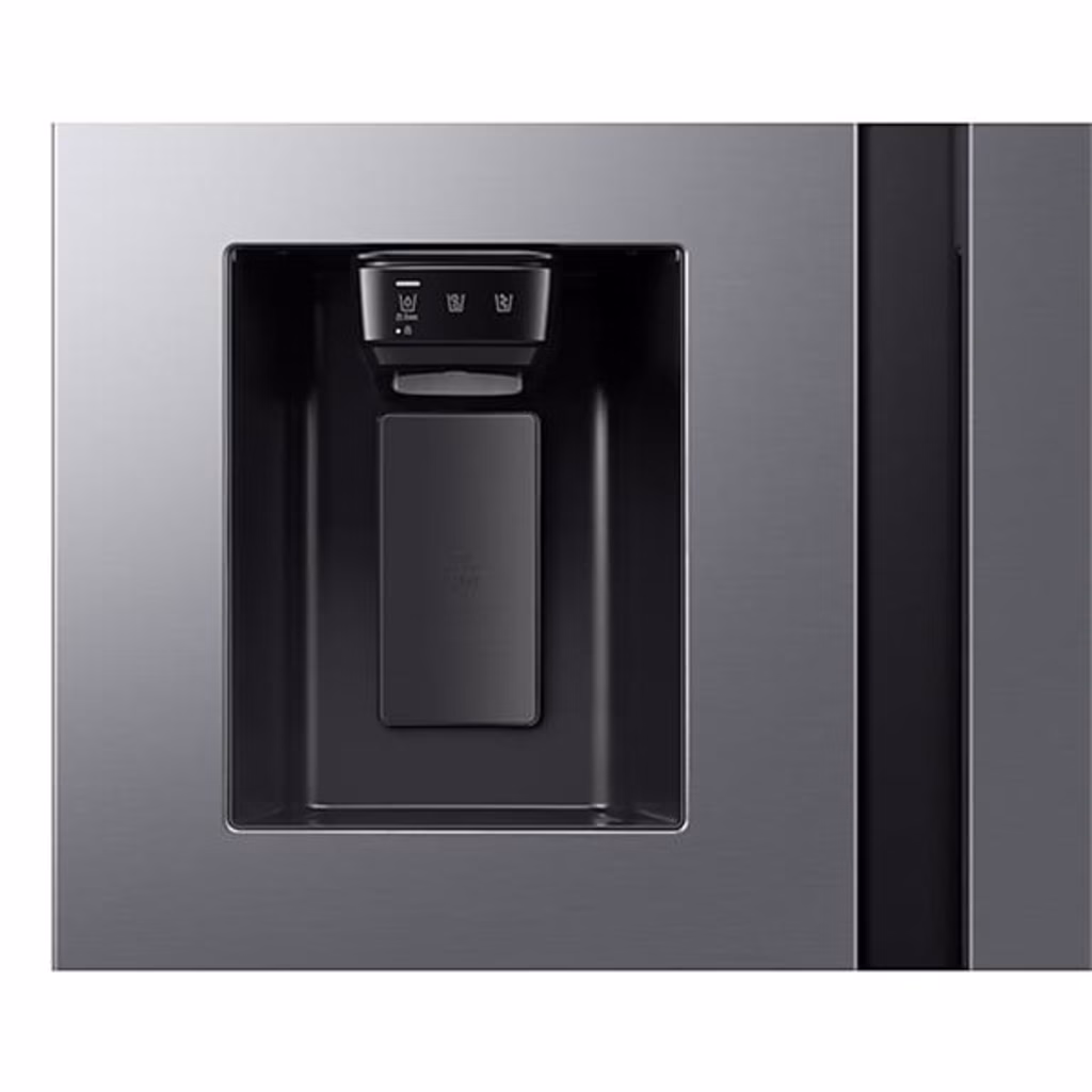 Il frigorifero RS70F65KETEF è perfetto per chi desidera massima capacità, tecnologia smart e un design moderno. Progettato per offrire il massimo della praticità, questo modello Side by Side garantisce una straordinaria capienza di 635 litri, ideale per famiglie numerose o per chi ama avere sempre a disposizione ingredienti freschi e ben organizzati. Grazie alla tecnologia Space Max?, le pareti sono più sottili senza compromettere l?isolamento termico, offrendo così più spazio interno senza aumentare le dimensioni esterne. Questo significa che puoi conservare più cibo, senza sacrificare lo stile e l?armonia della tua cucina. Il frigorifero è dotato di WiFi e AI Energy Mode, un sistema intelligente che monitora e ottimizza il consumo energetico in tempo reale. Collegandolo all?app SmartThings, puoi ricevere suggerimenti per ridurre i consumi e migliorare l?efficienza, contribuendo a un risparmio in bolletta senza rinunciare alle prestazioni. Il pratico dispenser di acqua e ghiaccio ti offre freschezza immediata con un semplice tocco, senza bisogno di aprire il frigorifero. Perfetto per le calde giornate estive o per servire bevande sempre alla temperatura ideale. Il retro in Metal Back garantisce maggiore resistenza, sicurezza e una migliore dissipazione del calore, contribuendo alla durata del frigorifero nel tempo. Il design minimalista e sofisticato si adatta a qualsiasi stile di cucina, donando un tocco di modernità ed eleganza