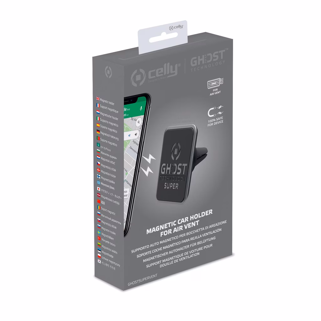 I 6 magneti ultra resistenti garantiscono la migliore tenuta dello smartphone anche su strade accidentate e grazie al suo design sottile ed elegante, GHOSTSUPERVENT è perfetto in ogni auto.