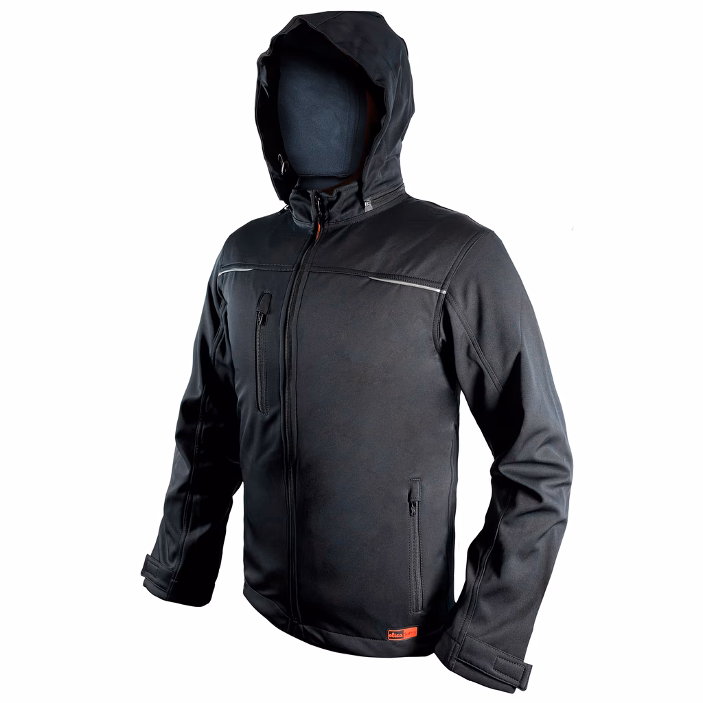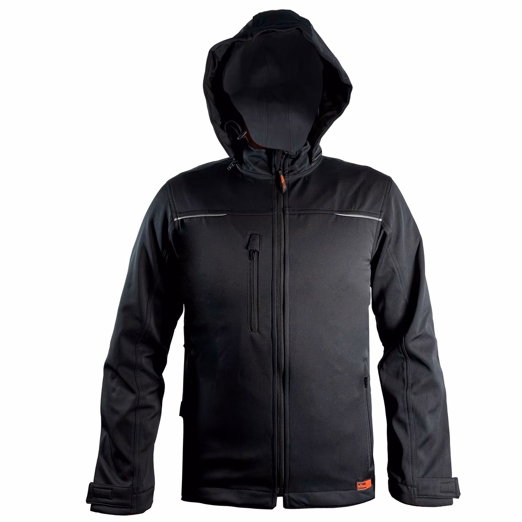 Giacca Softshell con 4 tasche e cappuccio 95% poliestere 5% elastane da 330 g/m² - 4 tasche: 2 laterali con zip - 1 al petto con zip - 1 interna con zip - manica regolabile con velcro - fodera in rete - fondo giacca con coulisse - fondo giacca sagomato - impermeabilità colonna d'acqua 10.000 mm - Zip YKK - cappuccio staccabile con zip