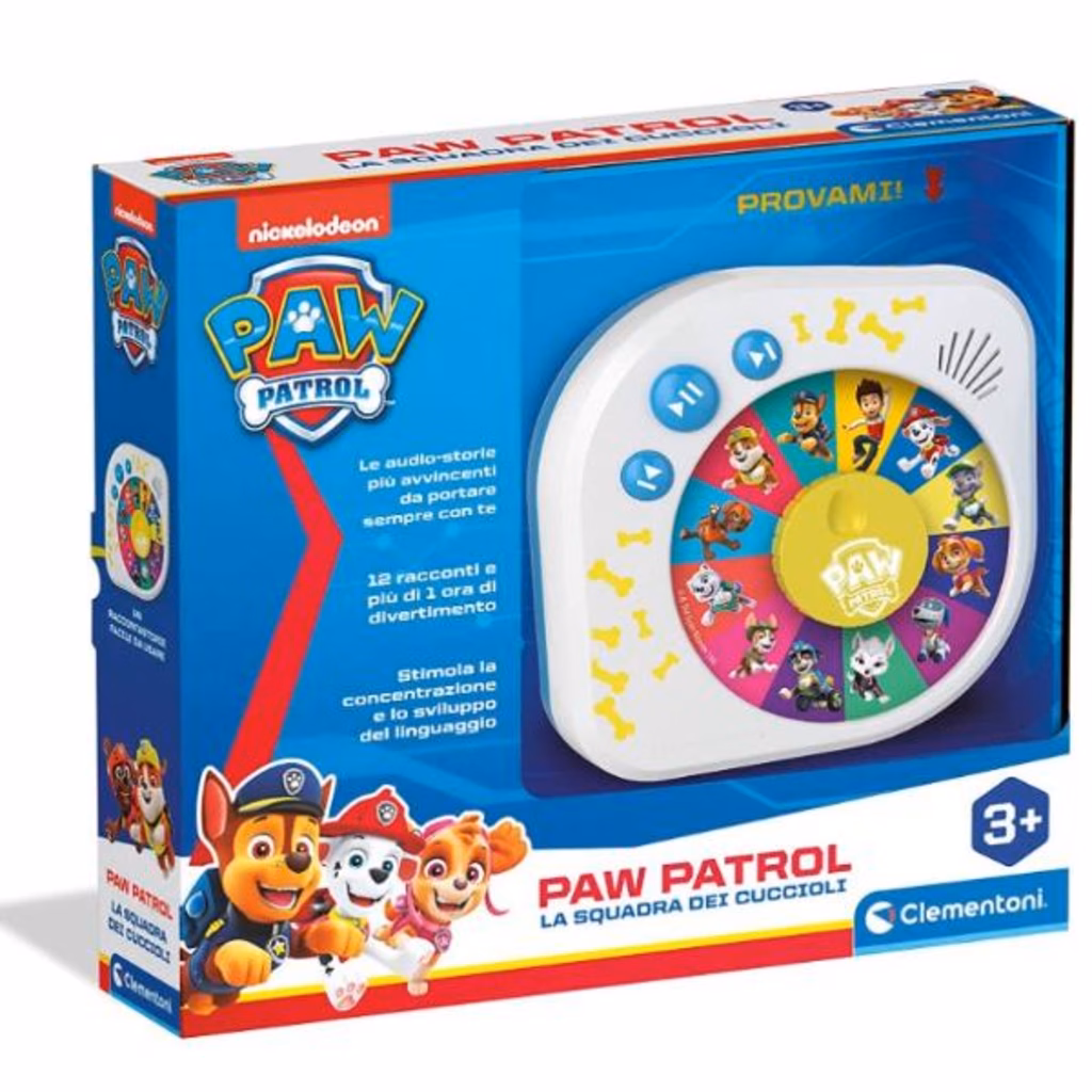 CARATTERISTICHE: Il raccontastorie accompagnerà il bambino in un'esperienza di gioco coinvolgente, ripercorrendo le storie di Paw Patrol. Portatile e con ingresso per l'inserimento delle cuffie, per ascoltare le storie anche in viaggio
