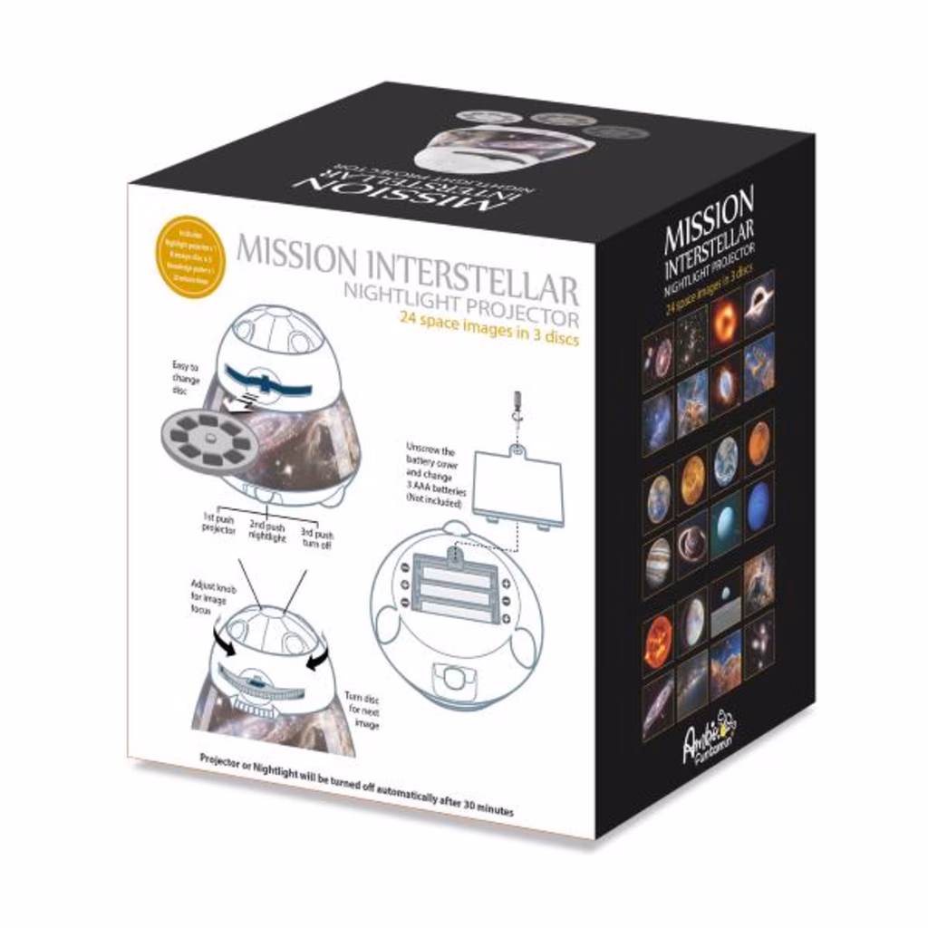 Il Mission Interstellar Nightlight Projector è molto più di un semplice proiettore. È una porta verso l'universo, un invito alla scoperta e un compagno rassicurante per le notti dei bambini. Con le sue proiezioni colorate, la funzione di luce notturna e il timer integrato, offre un'esperienza completa che combina divertimento, educazione e sicurezza. Questo proiettore è il regalo ideale per stimolare la curiosità e l'immaginazione dei bambini, trasformando ogni notte in un'avventura tra le stelle.
