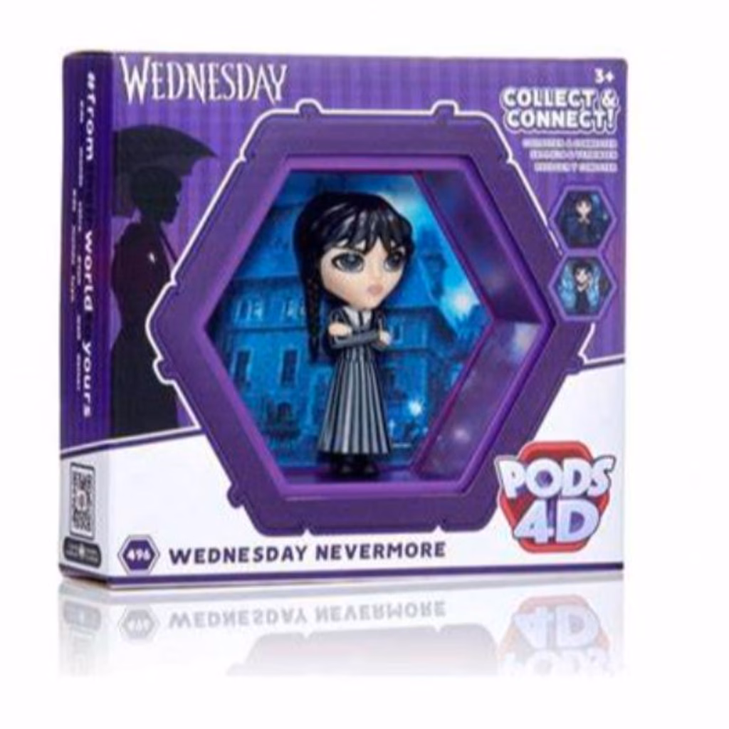 Colleziona Wednesday Addams nel suo look Nevermore Uniform fa parte della collezione Wednesday Pods 4D della serie Netflix che include mercoledì nel suo iconico vestito da ballo in discoteca