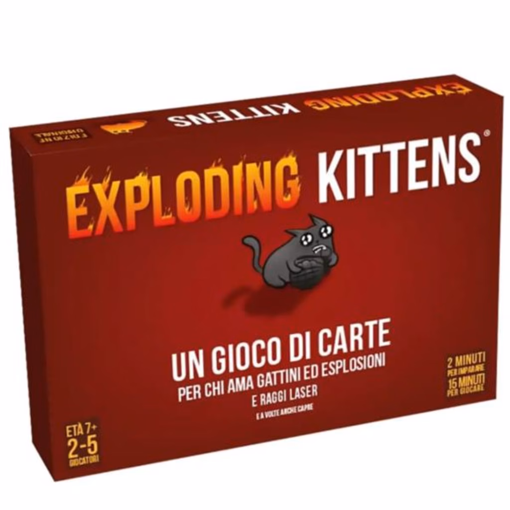 Exploding Kittens è un divertente gioco di carte che può coinvolgere tutta la famiglia o un gruppo di amici. Ecco alcune delle caratteristiche principali di questo gioco: