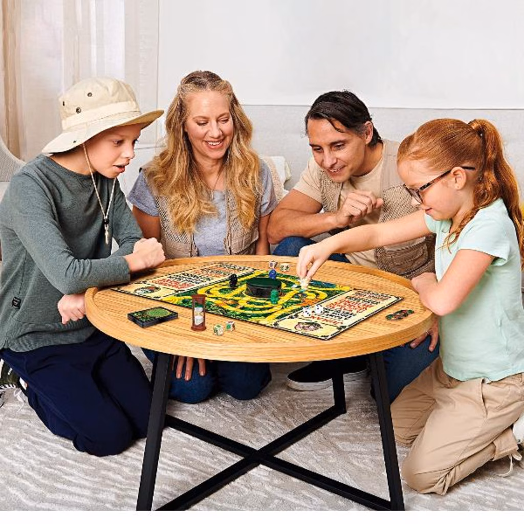 Date vita all'avventura con Jumanji il Gioco, la nuovissima edizione del leggendario gioco da tavolo. Voi e il vostro gruppo di coraggiosi avventurieri vi ritrovate improvvisamente nel profondo di una giungla misteriosa piena di segreti e sorprese. Il pericolo si trova lungo il vostro cammino, e minaccia di portarvi via i vostri 3 preziosi gettoni Vita. Il vostro obiettivo è raggiungere Jumanji (il centro) e gridare il suo nome, ma attenzione: se chiunque del vostro gruppo esaurisce i gettoni Vita, tutti perdono! Ad ogni turno, tirate i dadi e muovetevi lungo il percorso, inserite le carte sfida nel decodificatore a Cupola Verde per rivelare l'enigma. Risolvete l'enigma correttamente e spostatevi di una casella in più. Terminate il vostro turno girando la carta Sfida per vedere quali difficoltà ha in serbo per voi Jumanji, e cercate di superarle. Potreste dover recitare una storia sulle vostre avventure o correre a superare una sfida fisica. Fate attenzione o potreste perdere un gettone vita! Raggiungete il centro con almeno un gettone vita rimasto per giocatore e gridate "JUMANJI!" vicerete per l'intero gruppo! Jumanji il gioco, in legno massiccio, è l'eccitante gioco di avventura da giocare con amici e tutta la famiglia. Da 2 a 4 giocatori, dagli 8 anni in su