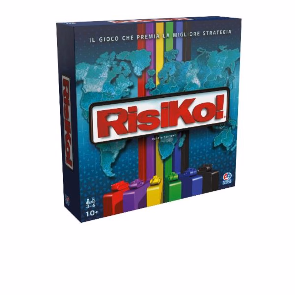 La quarta edizione di RisiKo!, il classico gioco di conquista strategica è tornato.                        Tutti adorano questo gioco da tavolo: giocare è semplice e divertente. Scegli il colore del tuo esercito. Distribuisci truppe e rinforzi in modo strategico. Poi attacca e invadi territori per raggiungere l'obiettivo segreto. Gioca con la regola time attack per partite rapide. Questa confezione contiene le carte obiettivo della modalità torneo, per allenarsi e prendere parte al campionato italiano ufficiale. Sfida i tuoi amici e predisponi la strategia per conquistare tutto.