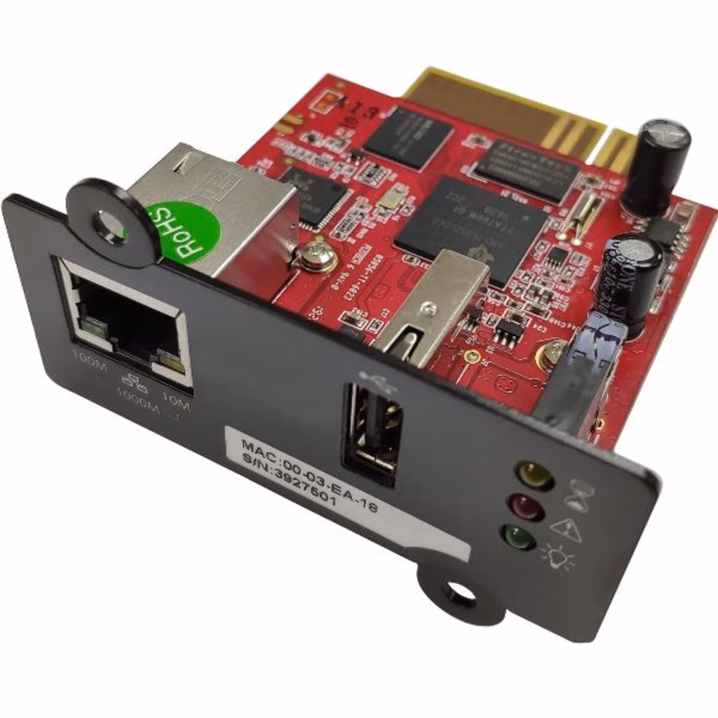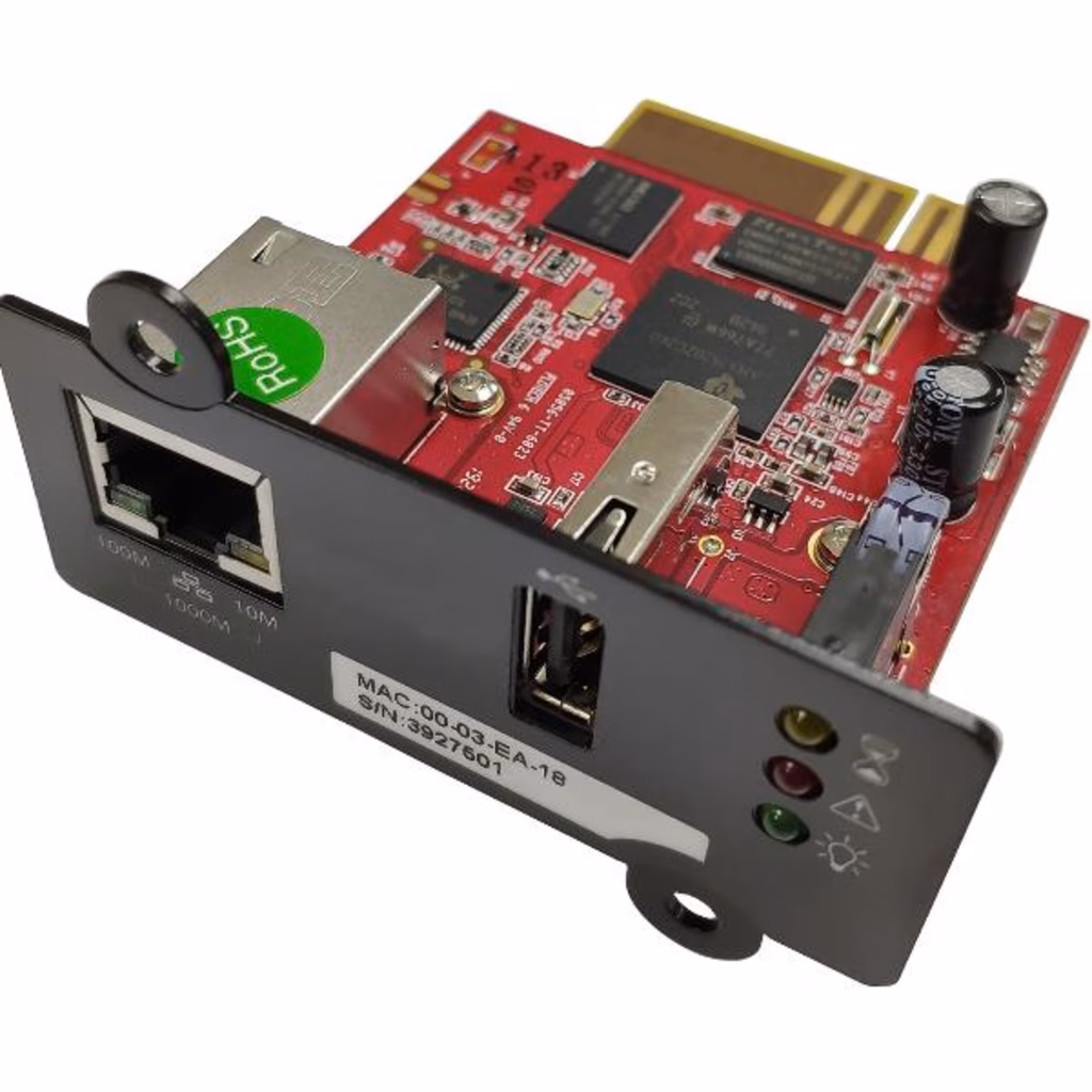 Scheda di rete per il monitoraggio e la gestione semplice degli Easy UPS serie 3. Possibilità di monitoraggio e gestione da remoto dello stato dell'UPS tramite l'interfaccia web dell'UPS o le suite di software EcoStruxure IT basate sul cloud oppure on-premise.