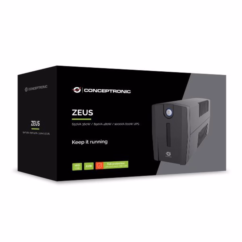 Immagine di Gruppo di continuità CONCEPTRONIC UPS 650VA 360W, Schuko x 2, HID USB, RJ45 In/Out, ZEUS01ES