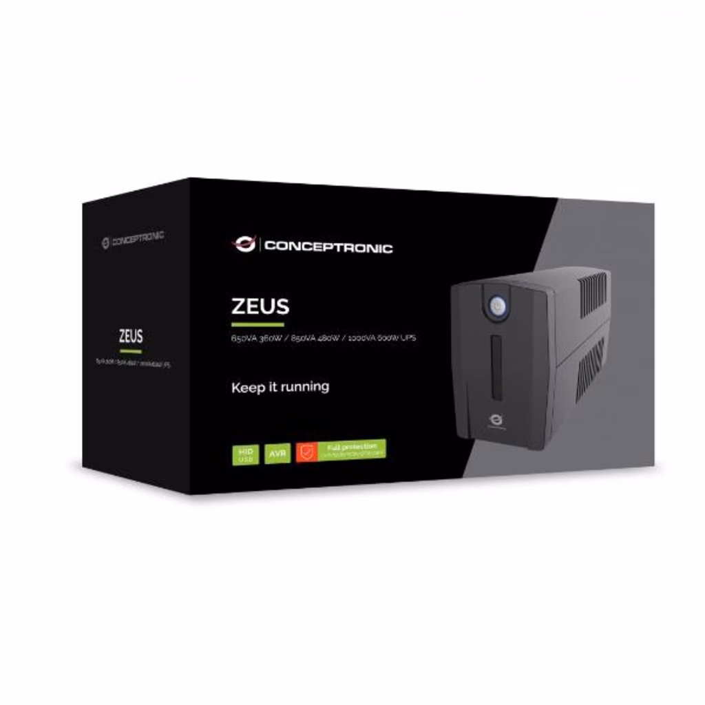 Immagine di Gruppo di continuità CONCEPTRONIC UPS 650VA 360W, Schuko x 2, HID USB, RJ45 In/Out, ZEUS01ES