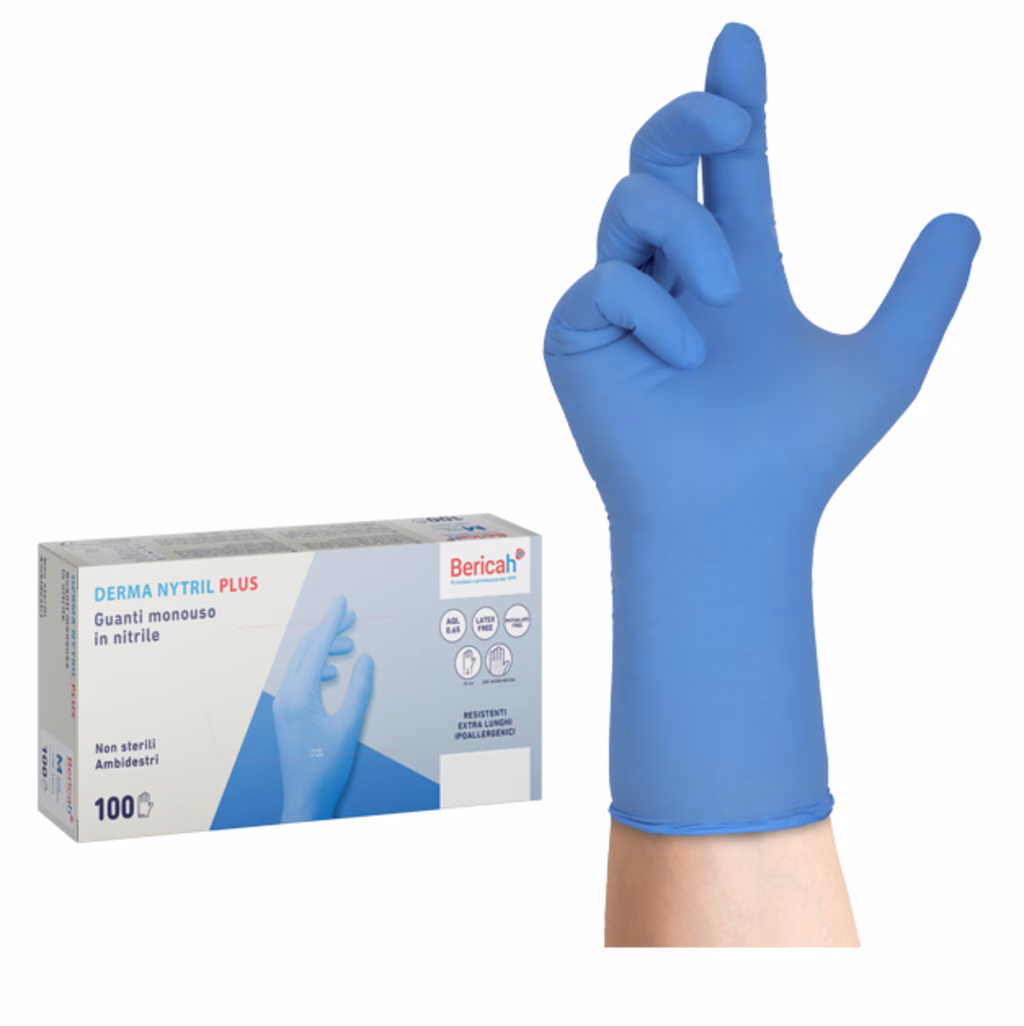 Guanti monouso in nitrile senza polvere BERICAH Derma Nytril Plus colore azzurro taglia L