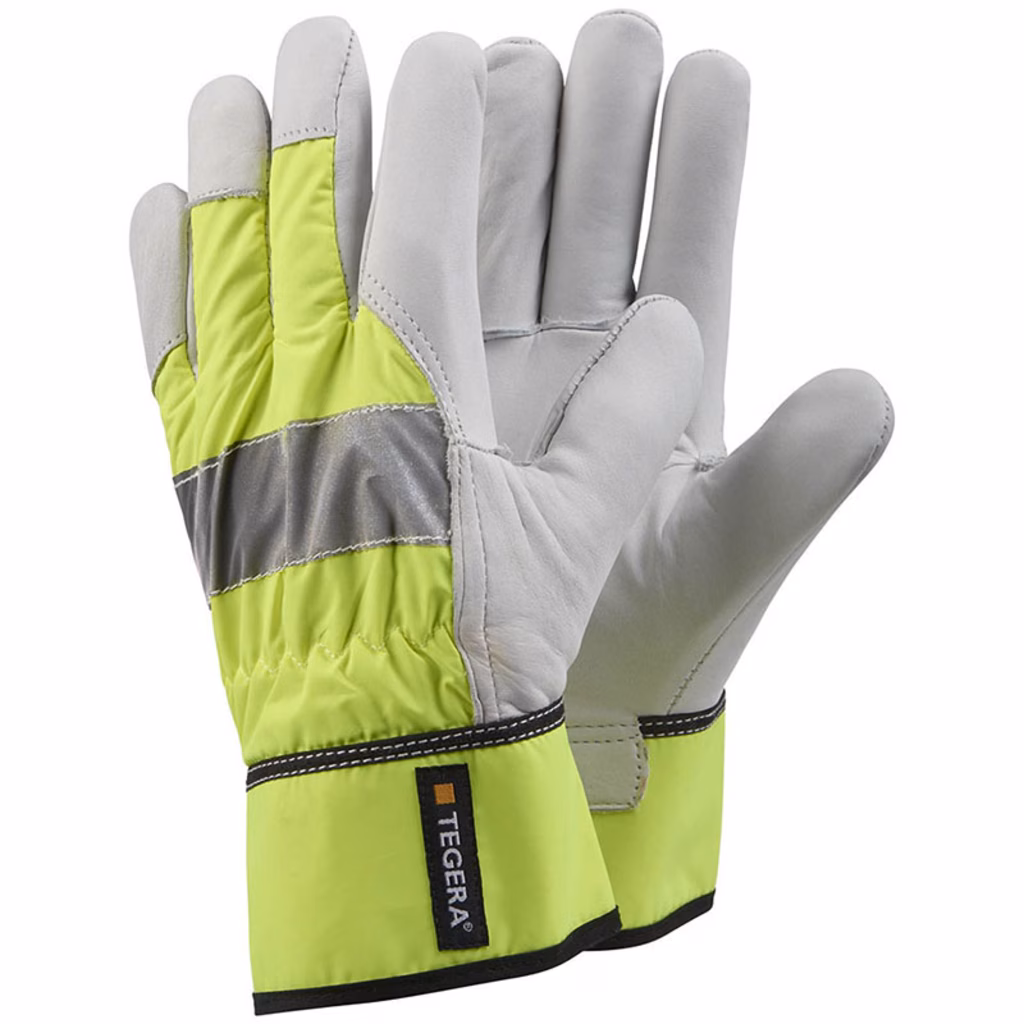 TEGERA® 198, Guanto in pelle, rivestito a metà, 1,0-1,2 mm pieno fiore di vacchetta, nylon, jersey, Cat. II, colore ad alta visibilità, riflettente, per lavori pesanti