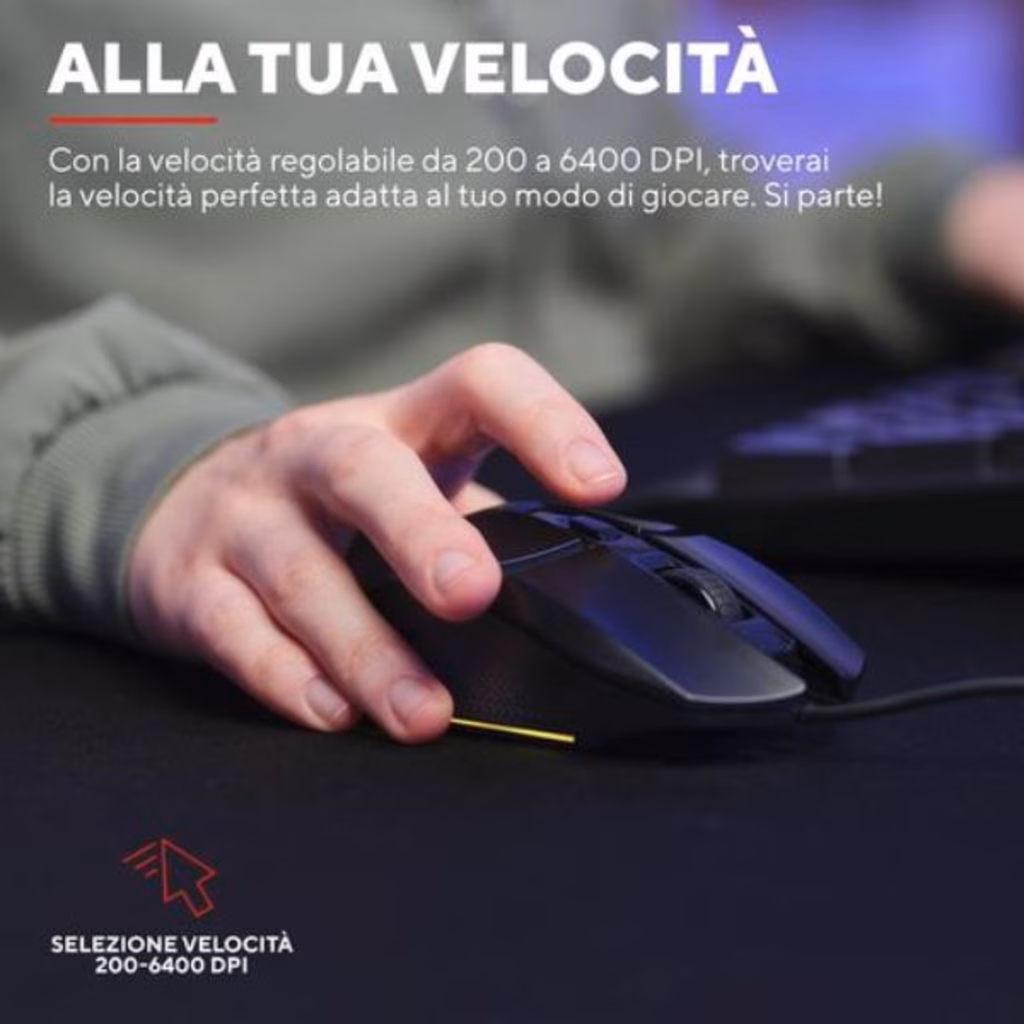 Gioca come vuoi tu: Felox si adatterà. Con la velocità regolabile da 200 a 6400 DPI, troverai la velocità perfetta adatta al tuo modo di giocare. Si parte!