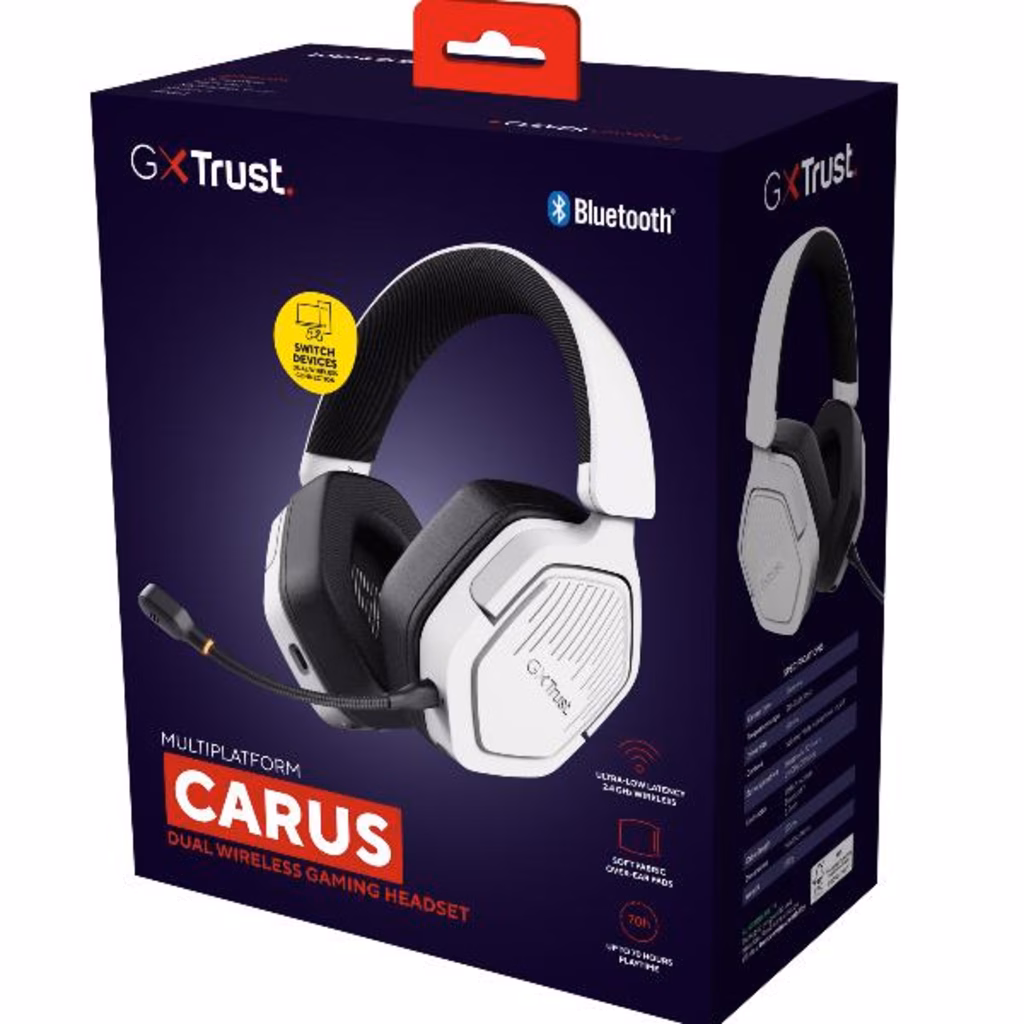 Migliora le tue prestazioni in gioco grazie alle cuffie gaming Carus Wireless, che assicurano bassa latenza grazie alla connessione wireless tramite ricevitore a 2,4 GHz. Vuoi passare a giocare su telefono o Switch? Nessun problema! Sono dotate anche di connessione Bluetooth. È tempo di conquistare il multiverso multipiattaforma...