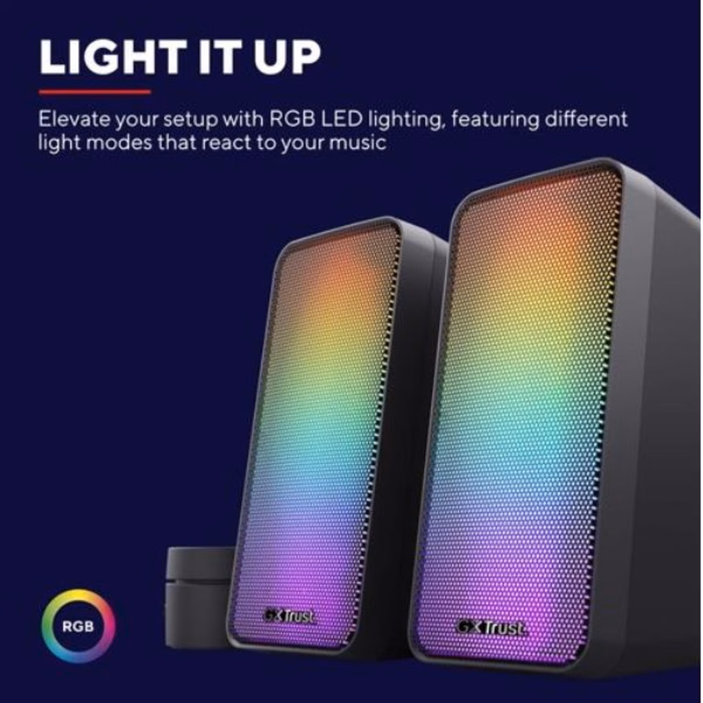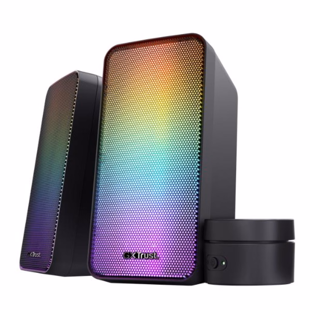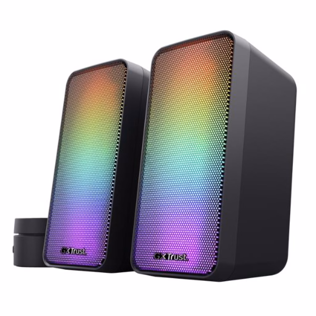 Il set di altoparlanti GXT 611 Wezz è dotato di illuminazione a LED RGB con varie modalità luce che reagiscono al ritmo della musica. Finalmente potrai vedere il suono. Qualcuno ha per caso detto superpoteri?