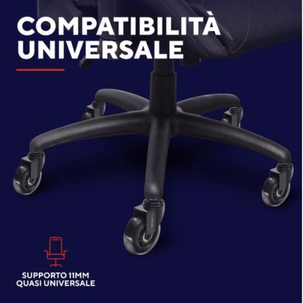 Dai nuova vita alla tua sedia con questo set da 5 ruote in gel da 75 mm, eleganti e super scorrevoli. Con attacco universale da 11 mm, garantiscono un movimento fluido e silenzioso, senza graffi o segni sul pavimento, e supportano fino a 300 kg. L'upgrade perfetto per ogni postazione.