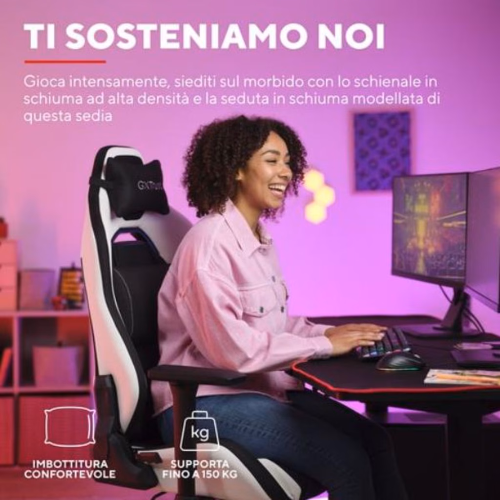 Quando il gioco si fa duro, siedi sul morbido. Con uno schienale in schiuma ad alta densità e un sedile modellato in schiuma, nella seduta Ruya sprofonderai nella massima comodità, per un gaming confortevole per tutto il tempo che vuoi.