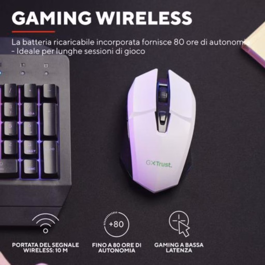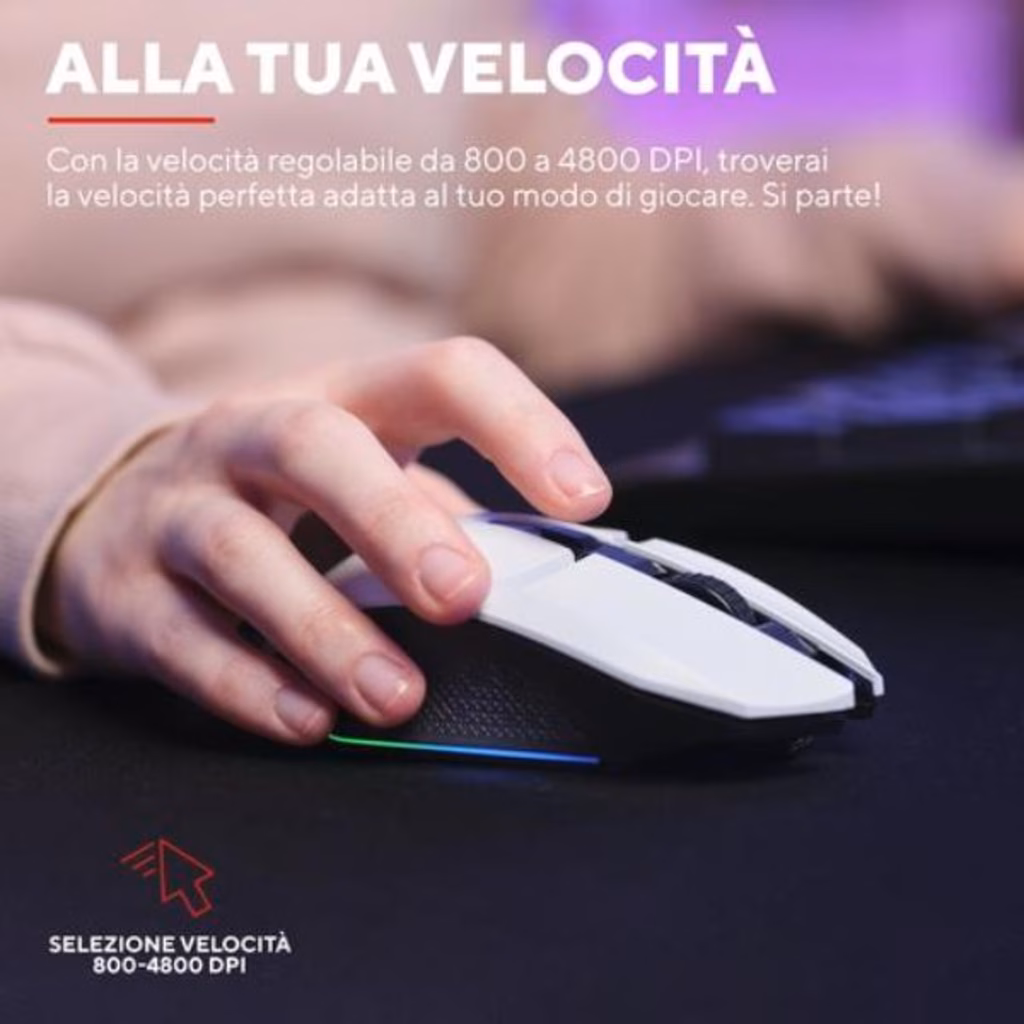 Dai alla tua postazione gaming una marcia in più con questo fantastico pacchetto. Sia la tastiera che il mouse sono dotati di illuminazione arcobaleno a LED multicolore con diverse modalità, che consentono di personalizzare questi due prodotti e adattarli al meglio al tuo stile di gioco. La tastiera TKL Thado occupa il 20% di spazio in meno rispetto a una normale tastiera da gaming, lasciandoti così più spazio sulla scrivania per movimenti del mouse ancora più precisi. Avrai a disposizione anche il mouse wireless gaming Felox, che consente di regolare la velocità tra 800 e 4.800 DPI per un esperienza di gioco mai vista prima. Entrambi sono nella colorazione Winning White: vincere non è mai stato così facile!