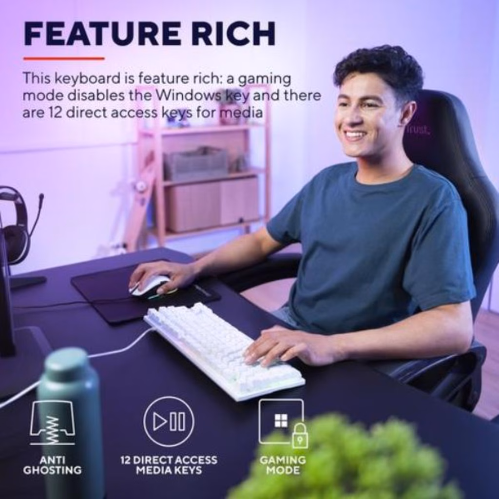 TRUST GXT 833 THADO TASTIERA ECO ILLUMINATA TKL - BIANCO 24738