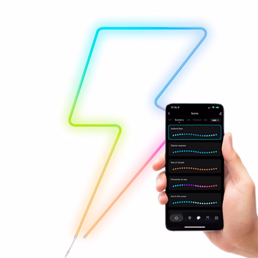 Cosa si ottiene sommando la tecnologia RGBIC, 60 LED per metro e la comprovata esperienza di Trust? La corda luminosa al neon LED Vybz, che offre una distribuzione del colore fluida e di alta qualità, per un tocco di colore e carattere alla tua stanza.