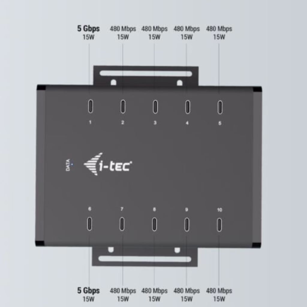 Hub a 10 porte USB-C con potenza 15W per porta I-TEC CACHRGHUB10CIT