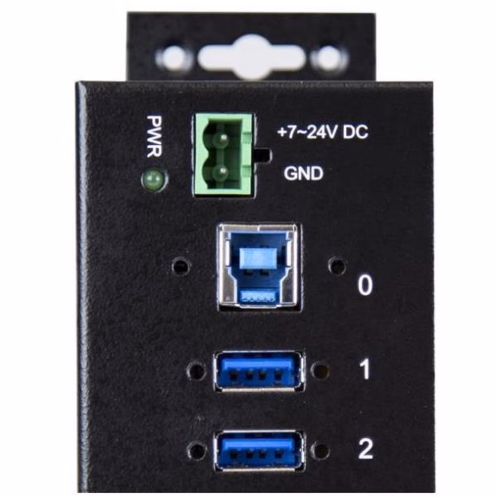 Questo hub USB per uso industriale offre prestazioni affidabili in un resistente alloggiamento in metallo e supporta un'ampia gamma di ingressi tramite la morsettiera da 7 a 24 V CC, assicurando la massima flessibilità per l'alimentazione dell'hub in base alle capacità di ingresso di potenza di cui si dispone.