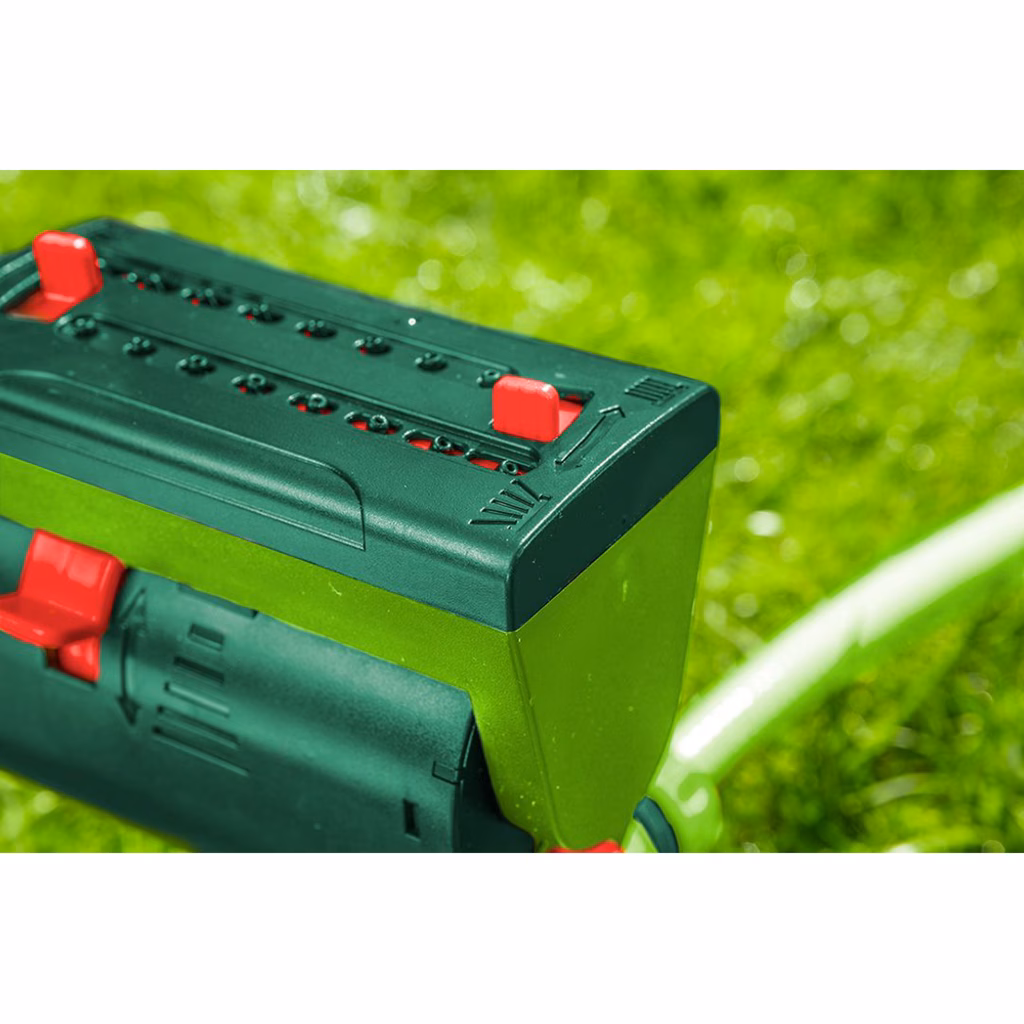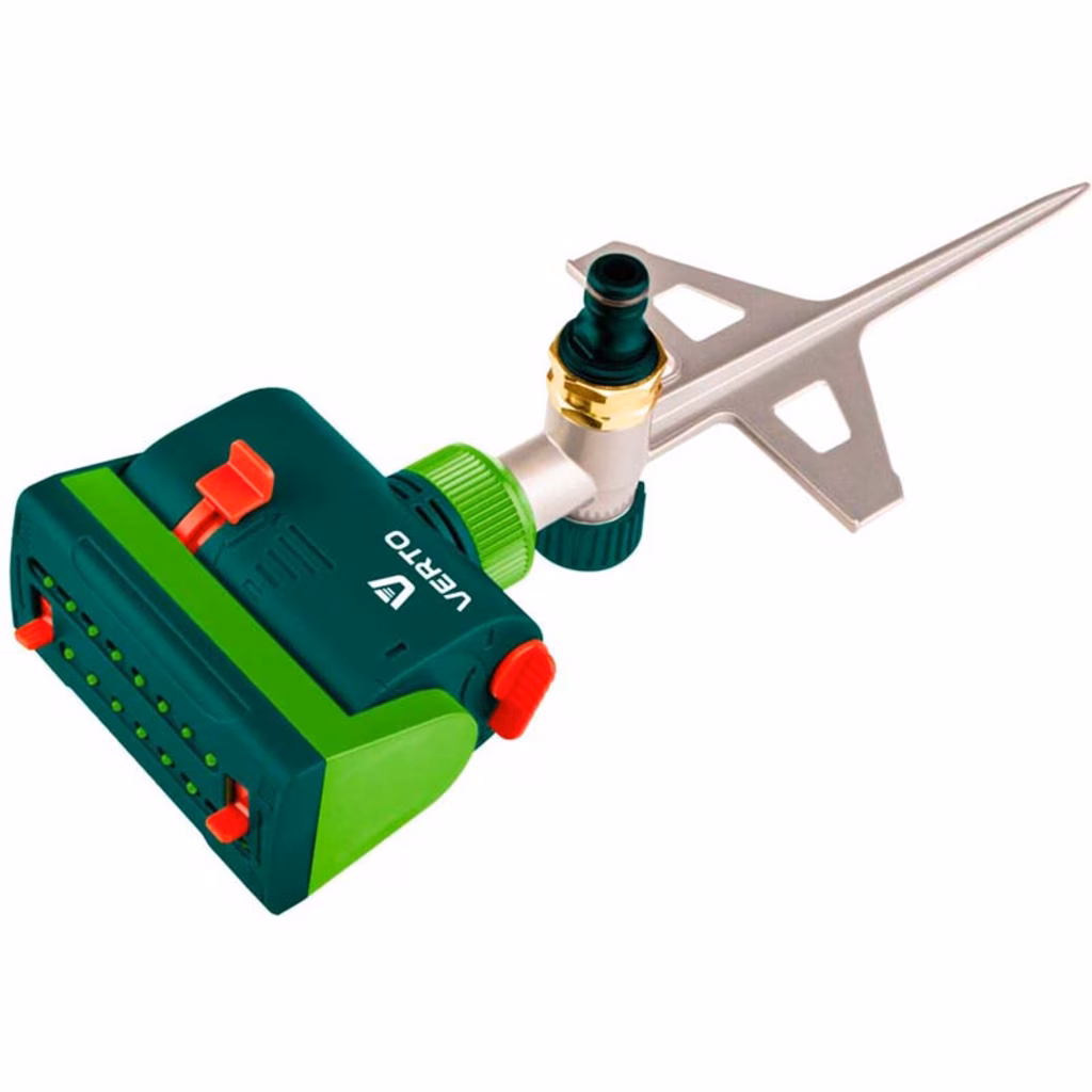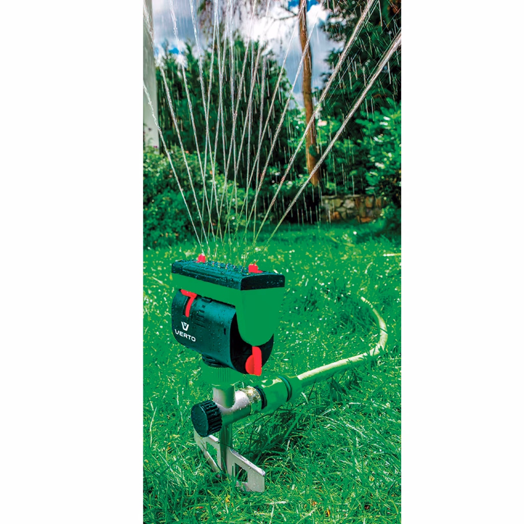 L'innaffiatore oscillante VERTO è realizzato in plastica durevole resistente a crepe e danni e consente un'irrigazione di un'area fino a 208 m². 16 ugelli spruzzatori dirigono i flussi d'acqua verso un'area di forma rettangolare. L'irrigatore può essere facilmente regolato per la gamma di spruzzatura. Il set include l'ago per sbloccare gli ugelli.