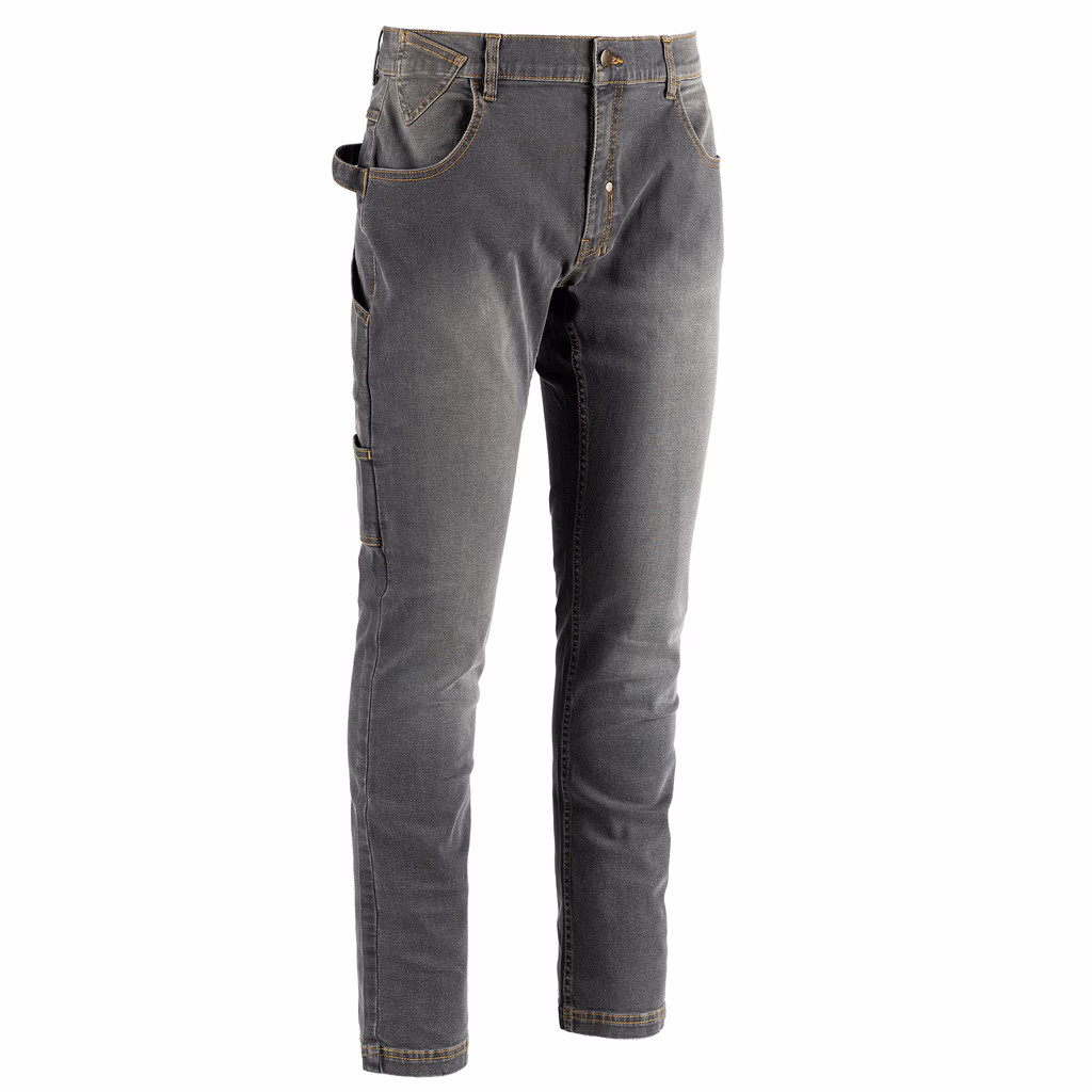 Jeans da lavoro elasticizzato - vestibilità slim fit - 2 tasche posteriori e 2 anteriori - tasca tecnica sulla gamba destra - chiusura centrale con zip - 98% cotone 2% elastan