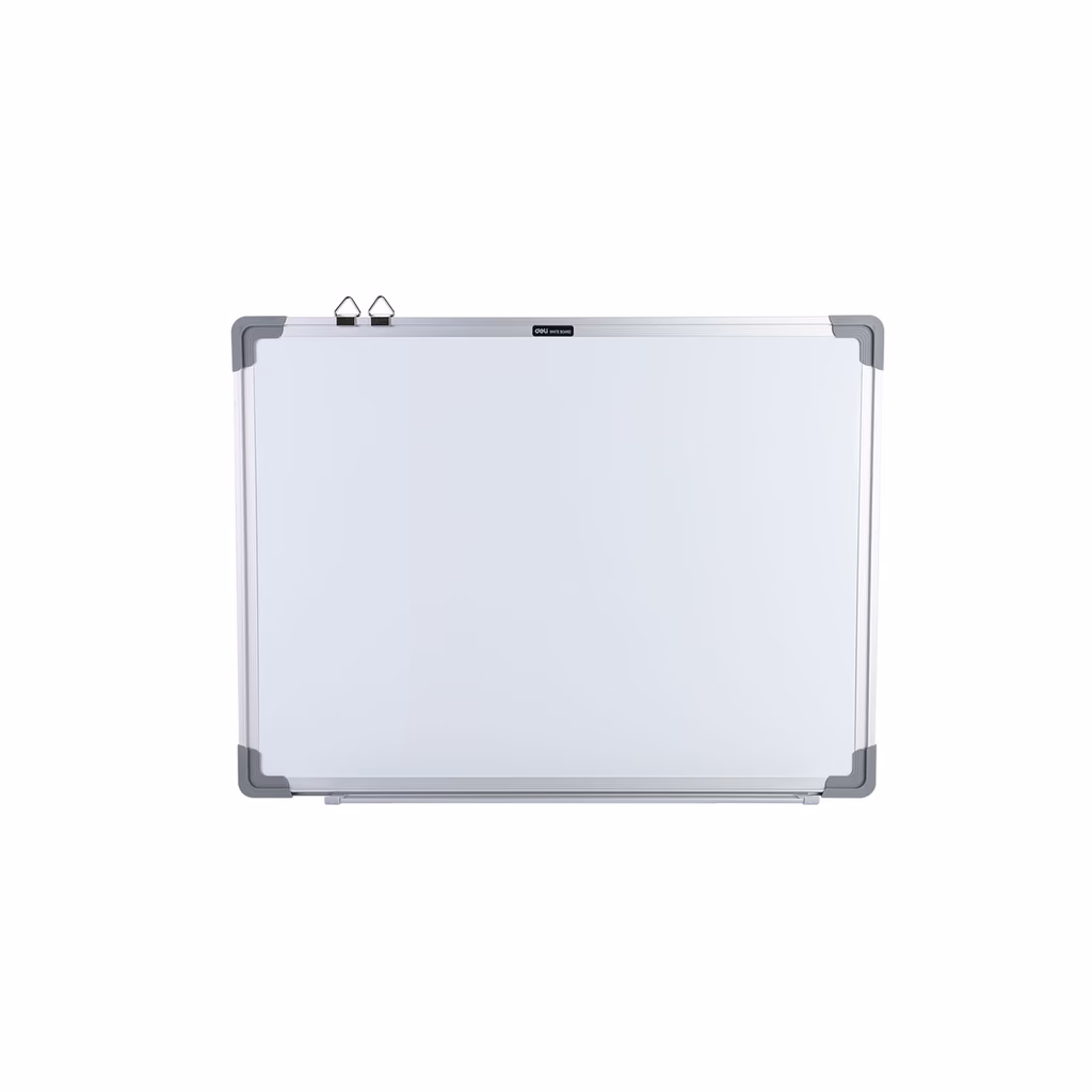 Lavagna bianca in acciaio laccato con superficie magnetica - bordo in alluminio e portapennarelli rimovibile - gli attacchi di montaggio inclusi consentono inoltre di fissare la lavagna al muro - garantita 1 anno.