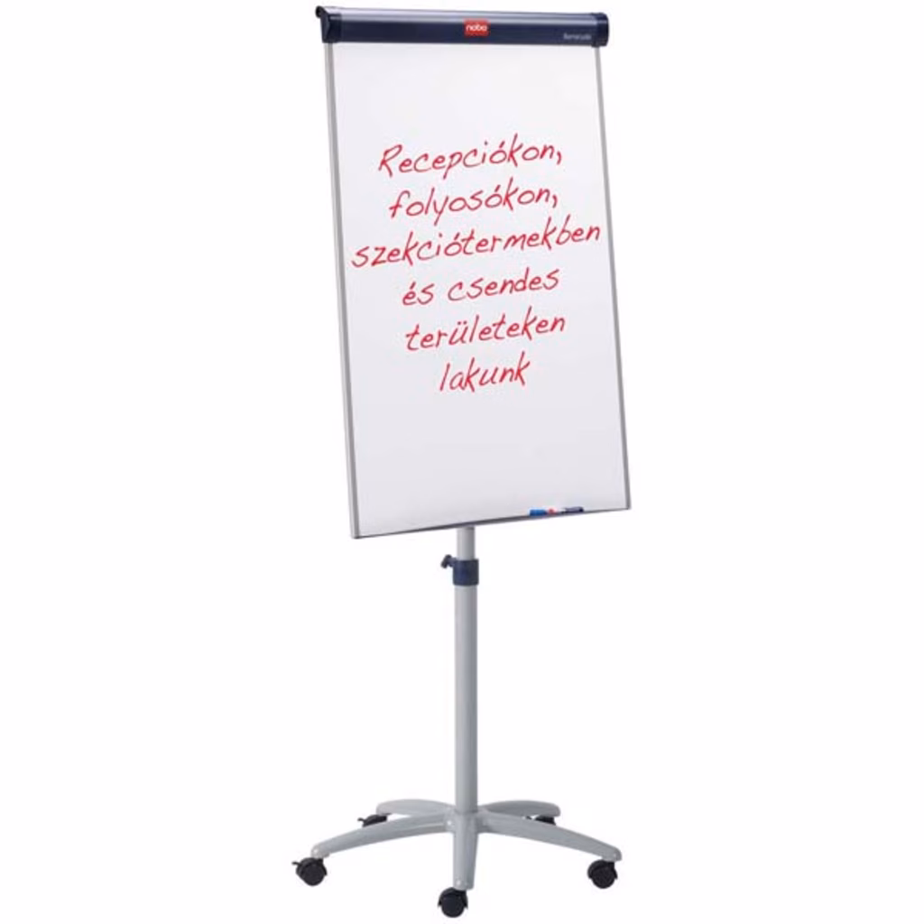 Il portablocco mobile in acciaio Nobo Classic è dotato di superficie magnetica in acciaio laccato adatta agli usi moderati grazie alla buona capacità di cancellatura e alla media resistenza a macchie di inchiostro, segni di pennarello, graffi e ammaccature. Base mobile ad altezza regolabile con ruote orientabili bloccabili. Ganci regolabili per blocchi, portapennarelli e pennarello Nobo in dotazione. 10 anni di garanzia