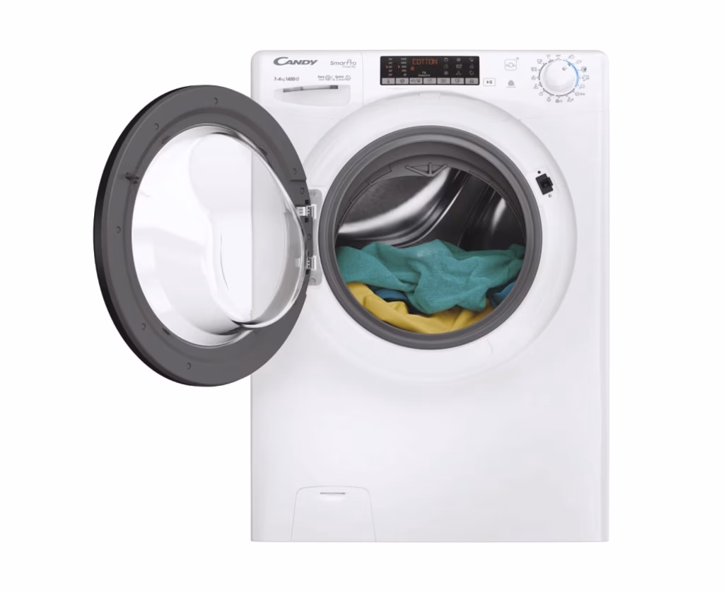 CSOW 4746TWMB5-SSmart Pro Inverter Velocità e comodità caratterizzano la lavasciuga Smart Pro Inverter, infatti è in grado di lavare a pieno carico in soli 39 minuti grazie all'innovativo Motore Speed-Drive e al sistema Quick&Clean.Risparmia denaro ed energiaConforme alla Nuova Etichetta Energetica, questa lavasciuga, utilizzando solo il ciclo di lavaggio, è in classe A. Paragonata a una in classe G, riduce i consumi almeno del 51%, permettendoti di risparmiare energia, denaro e rispettare l'ambiente.Trova il ciclo ideale con Snap&WashScegliere il giusto ciclo di lavaggio non è mai stato così facile. Grazie alla funzione Snap&Wash, puoi scoprire qual è il programma più adatto alla quantità e al colore del tuo bucato, semplicemente scattando una foto ai tuoi capi.Risparmia tempo grazie ai cicli rapidiGrazie al motore Speed-Drive Inverter, puoi ridurre i tempi di lavaggio fino al 50% senza rinunciare ai migliori risultati. Candy Smart Pro Inverter è infatti dotata di un set completo di cicli rapidi, ideali per soddisfare le tue esigenze di lavaggio in meno di un'ora.Motore Speed Drive Inverter per ottimi risultati di lavaggioIl Motore Speed Drive Inverter potenzia l'azione pulente fino al 50%* e garantisce i migliori risultati anche con cicli rapidi, riducendo al contempo il consumo di energia e le vibrazioni. *rispetto a un motore standard universale. Tecnologia Quick&Clean per prestazioni efficientiStop al detersivo direttamente sulle macchie dei vestiti. Per ottenere risultati rapidi e senza sforzo, ti basterà la tecnologia Quick&Clean che crea una miscela concentrata di acqua e detersivo e la spruzza direttamente sui capi, potenziando l'azione di rimozione delle macchie, anche con grandi carichi di lavaggio.