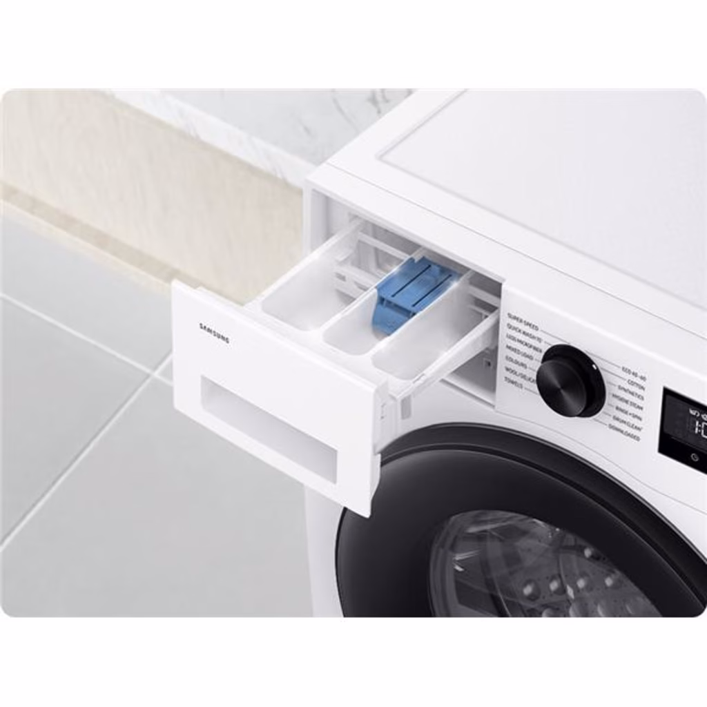 Samsung WW90DG5G34AEET lavatrice Caricamento frontale 9 kg 1400 Giri/min BiancoLava meglio e consuma meno Fino al 10% più efficiente rispetto a una classe A Lava i tuoi capi risparmiando energia. La gamma di lavatrici Samsung include modelli che offrono unextra efficienza pari al 10% e che, grazie a tecnologie avanzate, ottimizzano in modo intelligente le prestazioni di lavaggio, riducendo i tempi e i consumi. ? ? Bucato perfetto in 39 minuti Ecolavaggio Rapido Pulisci i tuoi capi in profondità e in meno tempo. Il programma Ecolavaggio Rapido 39' completa un ciclo di lavaggio giornaliero in soli 39 minuti[1]. Grazie alla funzione Speed Spray, risciacqua i capi con maggiore efficacia e aumenta la velocità di centrifuga per completare il lavaggio in soli 39 minuti. Meno microplastiche Ciclo Less Microfiber Con il ciclo Less Microfiber, i vestiti rilasceranno meno microplastiche nell'acqua di scarico. Regolando la velocità di rotazione del motore e l'intensità di lavaggio, questo ciclo consente di ridurre la quantità di microfibre rilasciate nell'acqua di scarico fino al 54%[2]. Smacchiatura intensiva Smacchiatutto Plus Anche lo sporco più ostinato si arrenderà alla funzione Smacchiatutto Plus, che contribuisce a rimuovere le macchie più difficili, come sangue, tè, vino, erba e trucco. I capi vengono immersi in una nuvola di bolle attive, che scioglie lo sporco e le macchie per consentire una rimozione più efficace[3]. Sempre connessi grazie a SmartThings Wi-Fi integrato Semplifica e ottimizza l'uso della tua lavatrice con lapp SmartThings[4] , per un lavaggio sempre più efficace. Laundry Recipe ti consiglia il ciclo di lavaggio più indicato[5] per ogni carico. Laundry Planner ottimizza la tua programmazione giornaliera[6]. Infine, la funzione Auto Cycle Link[7] seleziona la modalità di asciugatura ideale in base al lavaggio. SmartThings Energy Risparmia energia in modo smart! Tieni sotto controllo i tuoi consumi energetici con SmartThings Energy[8]. Ti consiglia come migliorare l'efficienza energetica dei tuoi elettrodomestici fornendoti in tempo reale le informazioni sui loro consumi[9] e confrontando questi dati con quelli del mese precedente. e se stai per superare la soglia di consumo mensile che hai impostato, il sistema ti invia una notifica. SmartThings Home Care Manutenzione semplice e intelligente Prendersi cura della lavatrice non è mai stato così semplice. SmartThings Home Care[10] ti avvisa quando è necessario sostituire un componente e ti aiuta a trovare le cause di eventuali problemi. Oltre a un manuale utente, questa funzione offre anche consigli utili per impiegare al meglio il tuo elettrodomestico. Silenzioso, performante e affidabile Tecnologia Digital Inverter Vorresti unefficienza superiore, meno rumori e prestazioni più durature? La tecnologia Digital Inverter sfrutta dei solidi magneti che consentono di ottenere i risultati desiderati in maniera efficace e silenziosa[11] , consumando meno energia rispetto un motore universale. Questo, inoltre, è il motore più duraturo del settore, coperto da una garanzia di 20 anni[12]. Risparmio energetico intelligente Monitora e riduci il consumo elettrico della tua lavatrice. Grazie alla modalità AI Energy Mode[13] puoi controllare facilmente il consumo di energia ed effettuare una stima della bolletta. Con i programmi che funzionano in AI Energy Mode[14] , i consumi si riducono anche del 70%[15] : basta attivare lopzione Ecobubble per lavare con acqua fredda anziché calda, senza allungare il ciclo. Il massimo dell'igiene Vapore igienizzante Dona ai tuoi capi una pulizia igienica e profonda grazie allazione del vapore, che rimuove lo sporco incrostato e il 99,9% dei batteri[16] e inattiva gli allergeni derivanti dagli acari della polvere domestica nel bucato[17] Il ciclo di vapore igienizzante riduce lesposizione ad acari della polvere, peli di cane e gatto, pollini e funghi[18] Prenditi cura della tua lavatrice Ecopulizia Cestello + Ligiene del bucato passa anche da quella della lavatrice. Ecoplizia Cestello + rimuove dal cestello il 99,9% dei batteri causa di cattivi odori[19] , senza luso di costosi detergenti. Inoltre, il potente getto dacqua e la centrifuga rapida rimuovono lo sporco dalla guarnizione delloblò. E ci pensa la lavatrice ad avvisarti quando è il momento di eseguire la pulizia periodica[20]. Niente più residui Cassetto StayClean Dimentica gli sprechi di detersivo e il tempo passato a pulire il cassetto della lavatrice. Con il cassetto StayClean potrai rimuovere una maggiore quantità di detersivo grazie a un apposito sistema di scarico dell'acqua. Così la vaschetta sarà sempre pulita, senza residui di sapone antigienici.Lava meglio e consuma menoFino al 10% più efficiente rispetto a una classe A