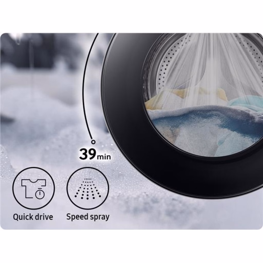 Samsung WW90DG6G94LKU3 lavatrice Caricamento frontale 9 kg 1400 Giri/min BiancoExtra efficienza energetica Fino al 10% più efficiente rispetto a una classe A Lava i tuoi capi risparmiando energia. La gamma di lavatrici Samsung include modelli che offrono unextra efficienza pari al 10% e che, grazie a tecnologie avanzate, ottimizzano in modo intelligente le prestazioni di lavaggio, riducendo i tempi e i consumi. ? ? Massima qualità del lavaggio con l'intelligenza artificiale AI Wash Pulito profondo[1] senza aggredire i tessuti, con meno acqua e detergente[2]. AI Wash sfrutta unavanzata tecnologia di rilevamento automatico per calcolare il peso e la morbidezza dei tessuti e monitorare continuamente il livello di sporco, regolando di conseguenza la quantità di acqua e detergente e i tempi di ammollo, risciacquo e centrifuga. Bucato perfetto in 39 minuti Super Speed Pulisci i tuoi capi in profondità e in meno tempo. Il programma Ecolavaggio Rapido 39' completa un ciclo di lavaggio giornaliero in soli 39 minuti[3]. Grazie alla funzione Speed Spray, risciacqua i capi con maggiore efficacia e aumenta la velocità di centrifuga per completare il lavaggio in soli 39 minuti. In collaborazione con Patagonia Ciclo Less Microfiber Samsung, Ocean Wise Plastics Lab e Patagonia collaborano per trovare soluzioni al problema dellinquinamento da microfibre. Il ciclo di lavaggio appositamente ideato da Samsung riduce il rilascio di microfibre anche del 54%. Un primo passo a tutela della salute degli oceani. Smacchiatura Intensiva Smacchiatutto Plus Anche lo sporco più ostinato si arrenderà alla funzione Smacchiatutto Plus, che contribuisce a rimuovere le macchie più difficili, come sangue, tè, vino, erba e trucco. I capi vengono immersi in una nuvola di bolle attive, che scioglie lo sporco e le macchie per consentire una rimozione più efficace[4]. Fino a un mese di lavaggi Ecodosatore Estrai il cassetto, versa detersivo e ammorbidente negli appositi scomparti. Il cassetto Ecodosatore eroga automaticamente la quantità necessaria per lavare i tuoi capi, senza sovradosare. Il dispenser può contenere fino a 30 dosi di detersivo[5]. Lavaggio intelligente AI Control Scopri un nuovo livello di comodità grazie allintelligenza artificiale, che personalizza il lavaggio ricordando le tue abitudini, suggerendoti i cicli più indicati e visualizzando le informazioni giuste quando servono. Usa lapp SmartThings[6] per scegliere il ciclo, programmare il lavaggio, risolvere i problemi e impostare in automatico il ciclo di asciugatura ideale[7]. Più spazio allinterno SpaceMax Lava anche i carichi più grandi grazie a una capacità di 9 kg, perfetta anche per gli spazi stretti. La tecnologia SpaceMax crea più spazio dentro, così da poter usare un cestello più grande senza aumentare le dimensioni esterne. La lavatrice si integra perfettamente e ti permette di lavare più capi contemporaneamente, anche se sono molto grandi. Sempre connessi grazie a SmartThings Wi-Fi integrato Semplifica e ottimizza l'uso della tua lavatrice con lapp SmartThings[8]. Laundry Recipe ti consiglia il ciclo di lavaggio più indicato[9]. Laundry Planner ottimizza la tua programmazione giornaliera[10]. Infine, la funzione Smart Link[11] seleziona la modalità di asciugatura ideale in base al lavaggio. SmartThings Clothing Care Lavaggio su misura. Il modo più semplice per fare il bucato. Un bucato perfetto, proprio come lo vuoi tu. Clothing Care[12] analizza le condizioni di utilizzo[13] e altri fattori per consigliarti il ciclo più indicato in base alle tue esigenze[14]. Controlla l'etichetta dei vestiti per individuare il programma più adatto in base alle istruzioni per il bucato. Inoltre, riceverai una notifica quando i prodotti per il bucato stanno per finire. Risparmio energetico intelligente SmartThings e AI Energy Mode Monitora e riduci il consumo elettrico della tua lavatrice. Grazie alla modalità AI Energy Mode[15] puoi controllare facilmente il consumo di energia ed effettuare una stima della bolletta. Con i programmi che funzionano in AI Energy Mode[16] , i consumi si riducono anche del 70%[17] : basta attivare lopzione Ecobubble per lavare con acqua fredda anziché calda, senza allungare il ciclo. SmartThings Home Care Manutenzione intelligente. Prestazioni eccezionali. Prendersi cura della lavatrice non è mai stato così semplice. SmartThings Home Care[18] ti avvisa quando è necessario sostituire un componente e ti aiuta a risolvere eventuali problemi. Inoltre, ti illustrerà anche la procedura da seguire per aggiornare il software dei servizi e dei dispositivi. Oltre a un manuale utente, questa pratica funzione offre anche consigli utili per utilizzare al meglio il tuo elettrodomestico. Silenziosa, efficace e affidabile Tecnologia Digital Inverter Unincredibile efficienza energetica, meno rumori e prestazioni che durano nel tempo. La tecnologia Digital Inverter utilizza solidi magneti che consentono di ottenere i risultati desiderati in maniera efficace e silenziosa, consumando meno energia rispetto a un motore universale. Inoltre, si tratta del motore più duraturo del settore, coperto da una garanzia di 20 anni[19]. Meno batteri Vapore igienizzante Dona ai tuoi capi una pulizia igienica e profonda grazie allazione del vapore, che rimuove lo sporco incrostato e il 99,9% dei batteri[20] e inattiva gli allergeni derivanti dagli acari della polvere domestica nel bucato[21] Il ciclo di vapore igienizzante riduce lesposizione ad acari della polvere, peli di cane e gatto, pollini e funghi[22] Prenditi cura della tua lavatrice Ecopulizia Cestello + Keep the inside of the machine hygienically clean and fresh. Drum Clean + removes dirt and 99.9% of certain odor-causing bacteria[23] in the drum by soaking, pulsating and spinning. A water jet and fast spinning also remove grime from the door gasket. And it notifies you when it needs cleaning[24].Extra efficienza energeticaFino al 10% più efficiente rispetto a una classe A