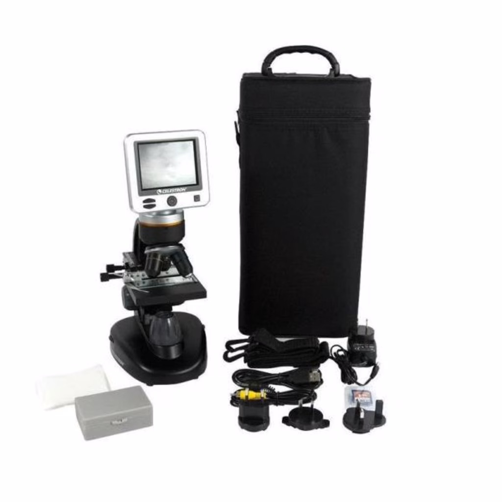 Il microscopio digitale LCD Digital Microscope II è uno strumento versatile che può essere usato sia sul campo che in classe. Il microscopio è dotato di un schermo da LCD  da 3,5″  e di scheda SD da 1 Gb per registrare immagini e filmati. Sarete in grado di catturare foto con la sua fotocamera digitale incorporata da 5 megapixel e anche registrare brevi filmati dei vostri campioni. Il microscopio include il software Celestron Capture Pro per l’utilizzo con il PC, e una uscita TV, per visualizzare le immagini ripresa dal microscopio su qualsiasi schermo.