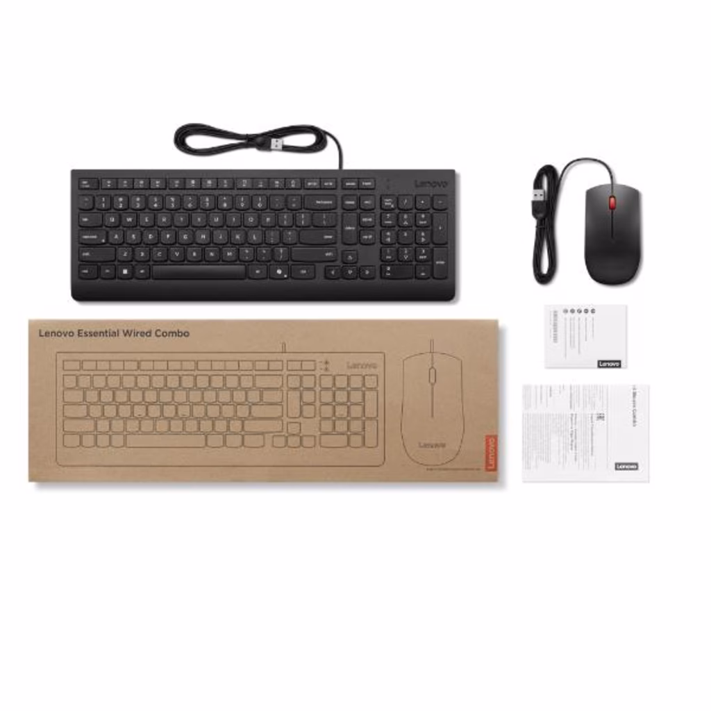 Il set di mouse e tastiera cablati Lenovo Essential rende tutto più semplice. La tastiera e il mouse durevoli si connettono a qualsiasi porta USB, offrendo l'affidabilità della connessione cablata. La resistente membrana impermeabile è in grado di gestire i versamenti accidentali di liquidi senza mettere a rischio le prestazioni. La digitazione è piacevole grazie ai tasti silenziosi e al tastierino numerico, disposti in un moderno layout compatto. Migliora la tua efficienza con il tasto Microsoft Copilot dedicato. Il mouse ergonomico di dimensioni standard assicura la massima comodità di utilizzo quotidiano. Aumenta la produttività completando le attività senza problemi con il sensore con risoluzione ottica elevata di 1.600 DPI.