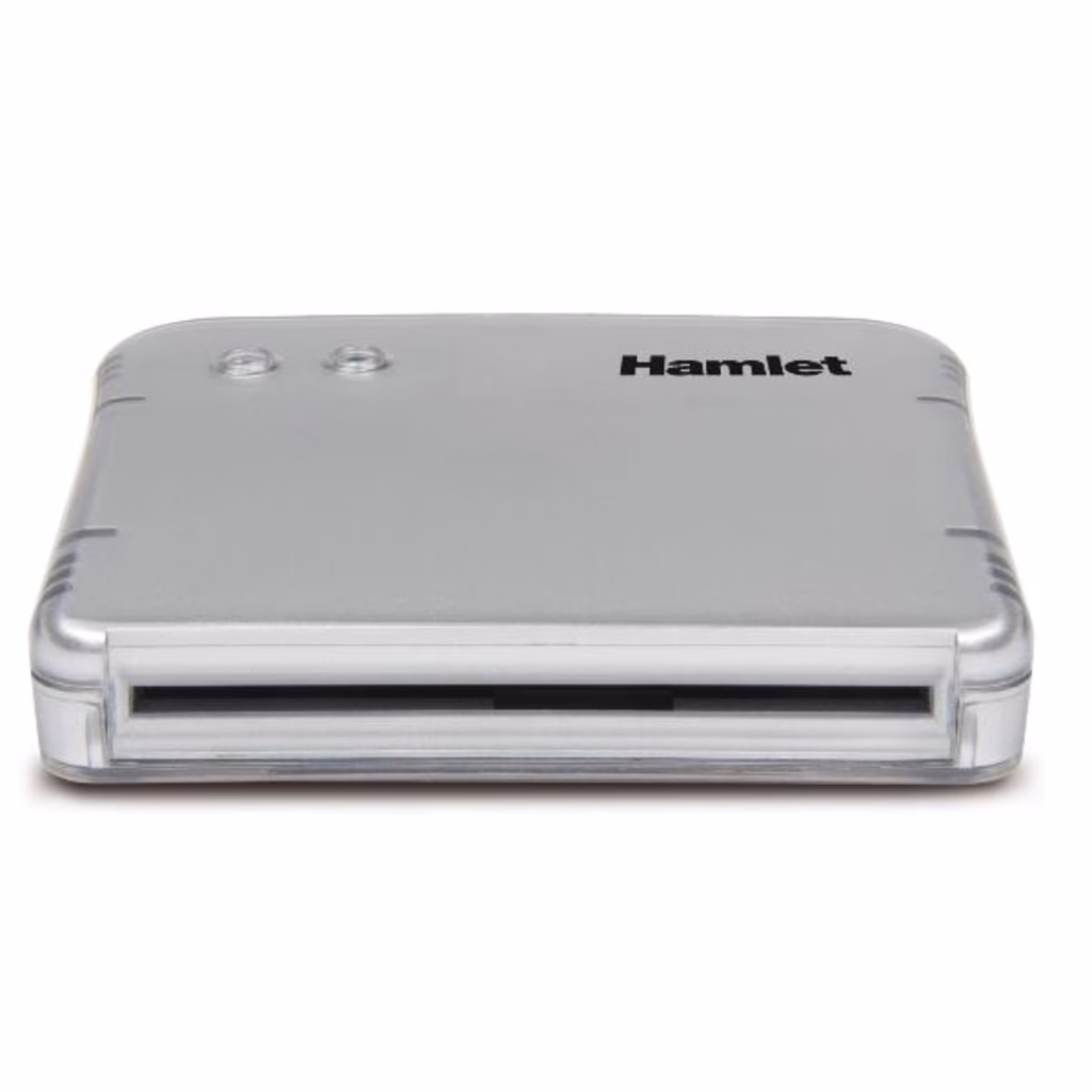 Hamlet HUSCR2 è un lettore di Smart Card e SIM Card che si collega al PC e permette di utilizzare i servizi on-line tramite Carta Regionale dei Servizi (CRS), Carta Nazionale dei Servizi (CNS), l'invio di firma digitale crittografata, l'Home Banking, il commercio elettronico e le altre applicazioni che richiedono dati sicuri. Hamlet HUSCR2 è predisposto per la gestione di SIM Card telefoniche (software per la lettura delle SIM Card telefoniche non incluso). Compatibile con il software delle camere di commercio italiane per la firma digitale e con le specifiche ISO 7816, PC/SC 2.0 e USB-IF CCID. Certificazioni Microsoft WHQL e EMV.caratteristicheIdeale per la firma digitale di documenti elettronici e per accedere ai servizi on-line della pubblica amministrazioneCompatibile con Smart Card come Carta Regionale dei Servizi (CRS), Carta Nazionale dei Serivizi o Tessera Sanitaria (CNS/TS), Carte ATe in dotazione ai dipendenti pubblici